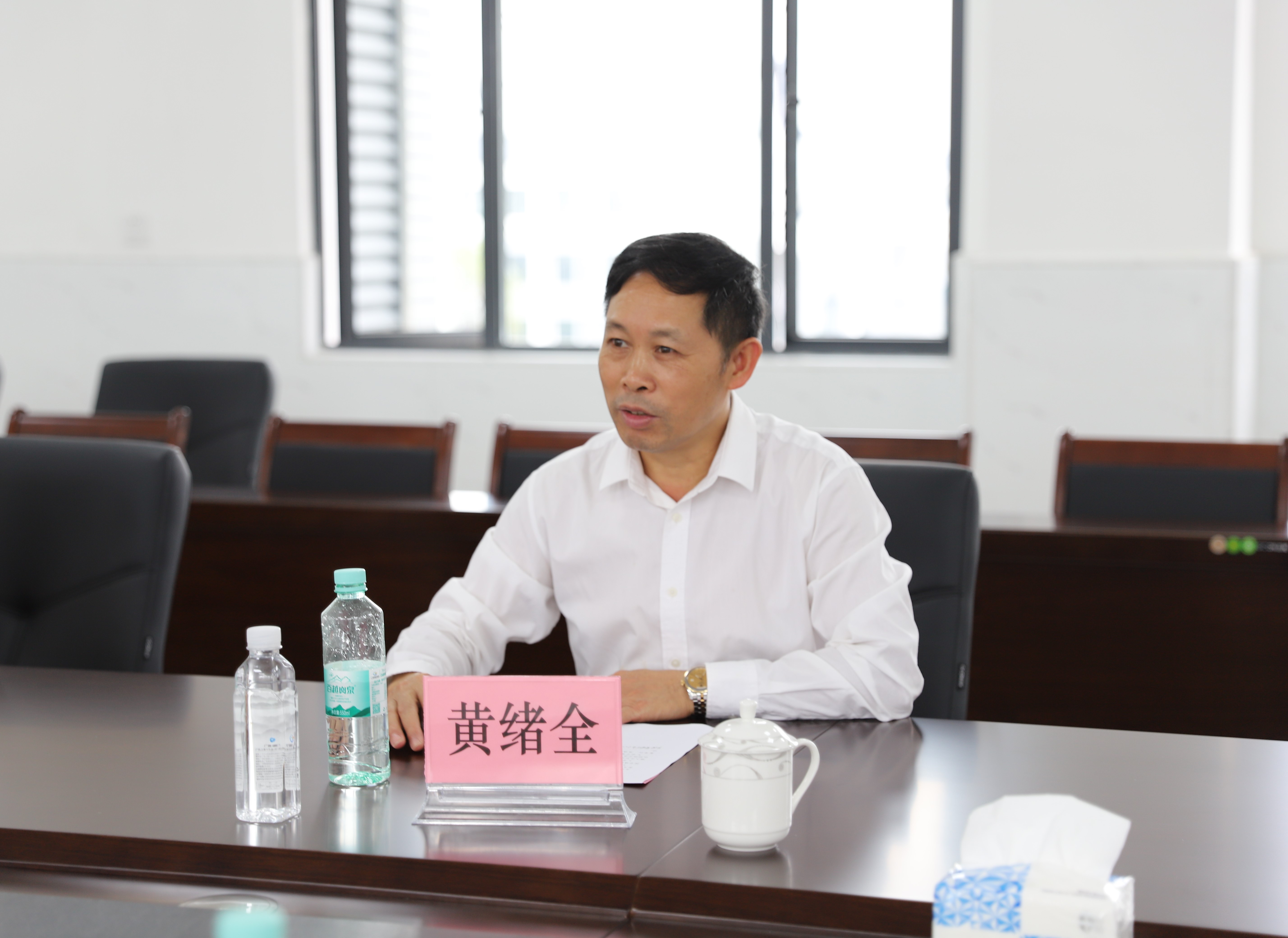 10月13日下午,自治区财政厅黄绪全副厅长一行莅临beat365官网调研,并围绕拓宽教育筹资渠道工作进行座谈。物资集团总经理、广西环保产业投资集团董事长刘鑫、物资集团党委副书记、学院党委书记欧军、物资集团副总经理、学院行政负责人罗圆陪同调研。