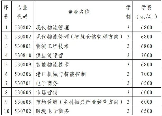 学校实行学年制,各专业学费标准如下表: