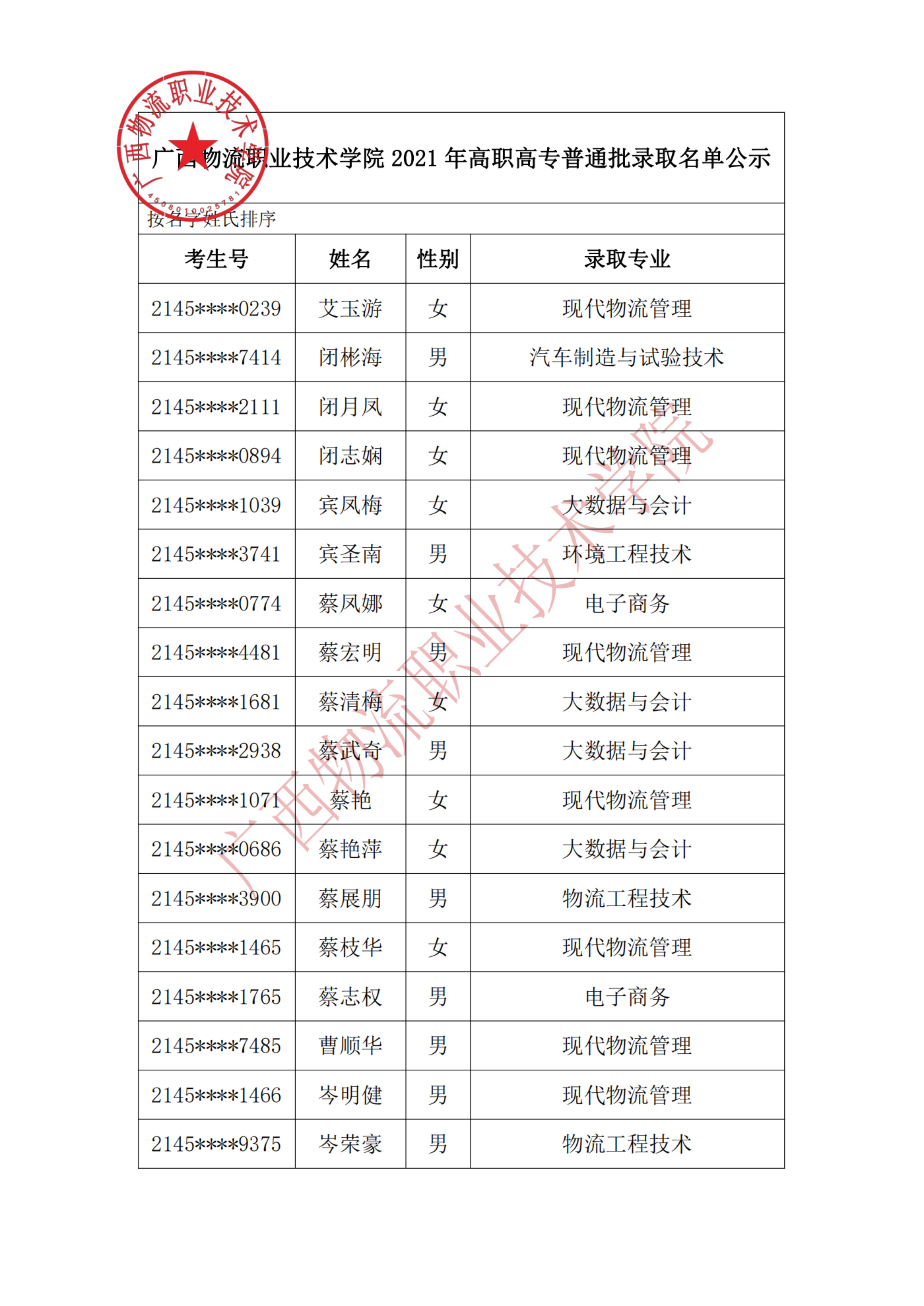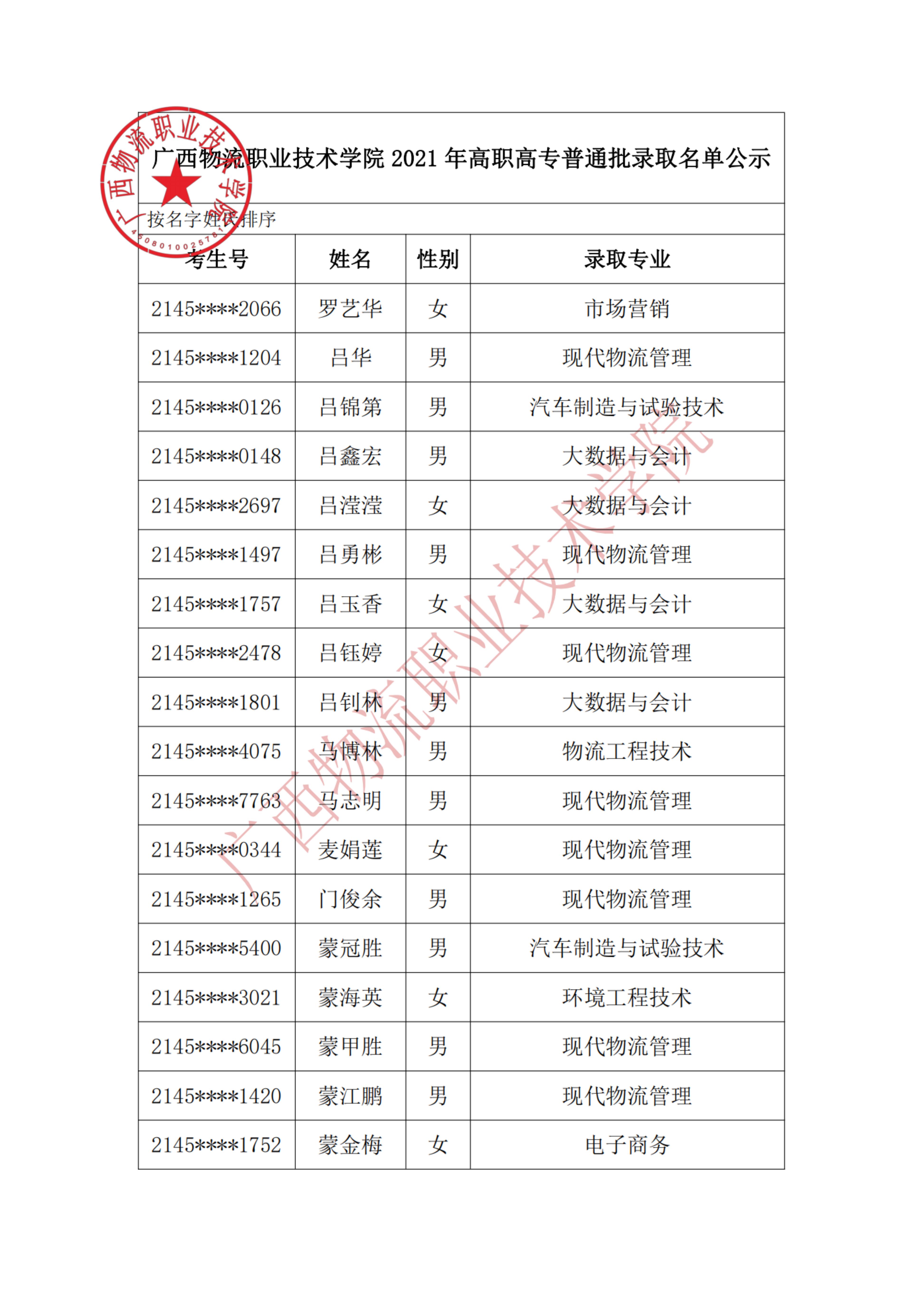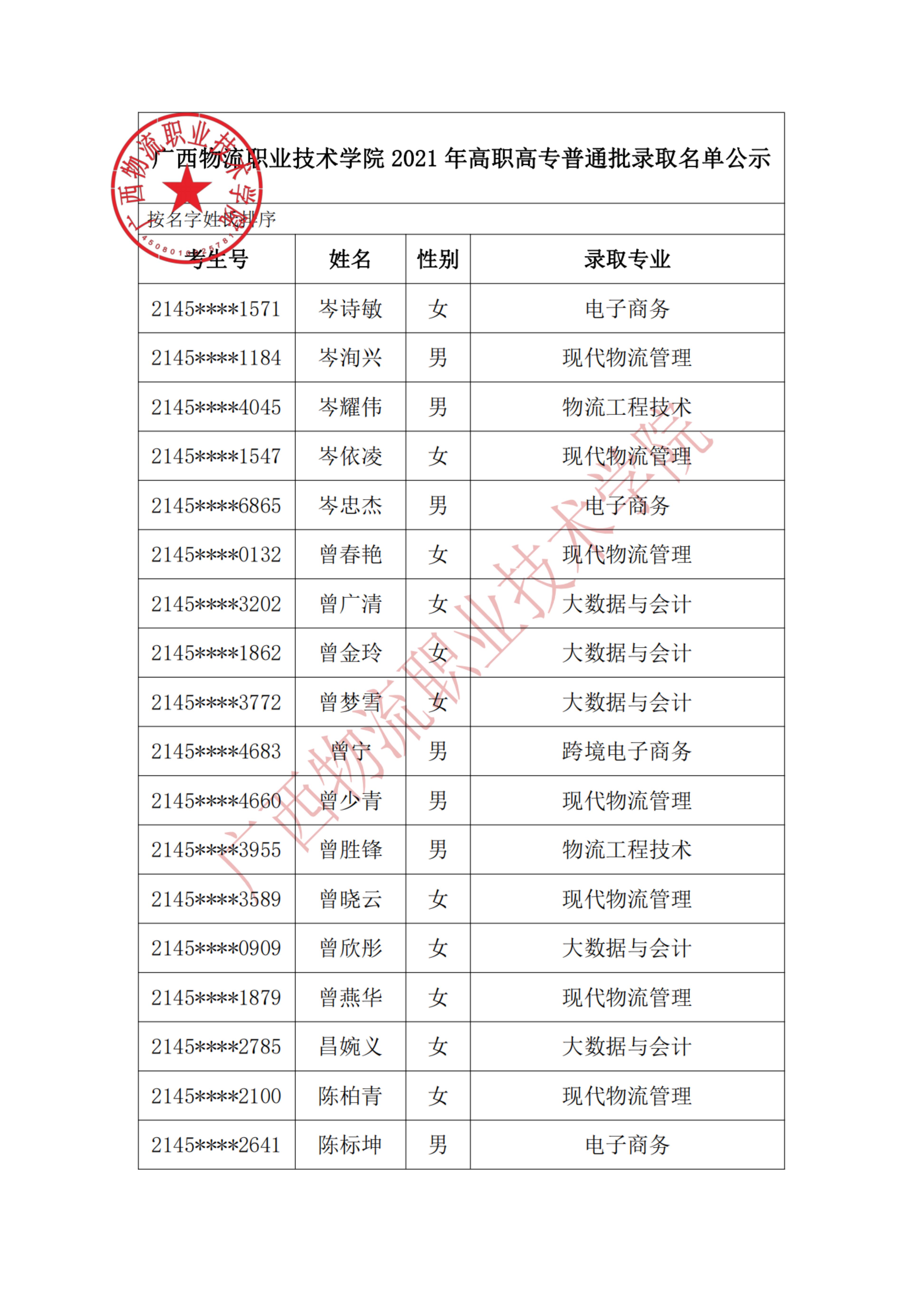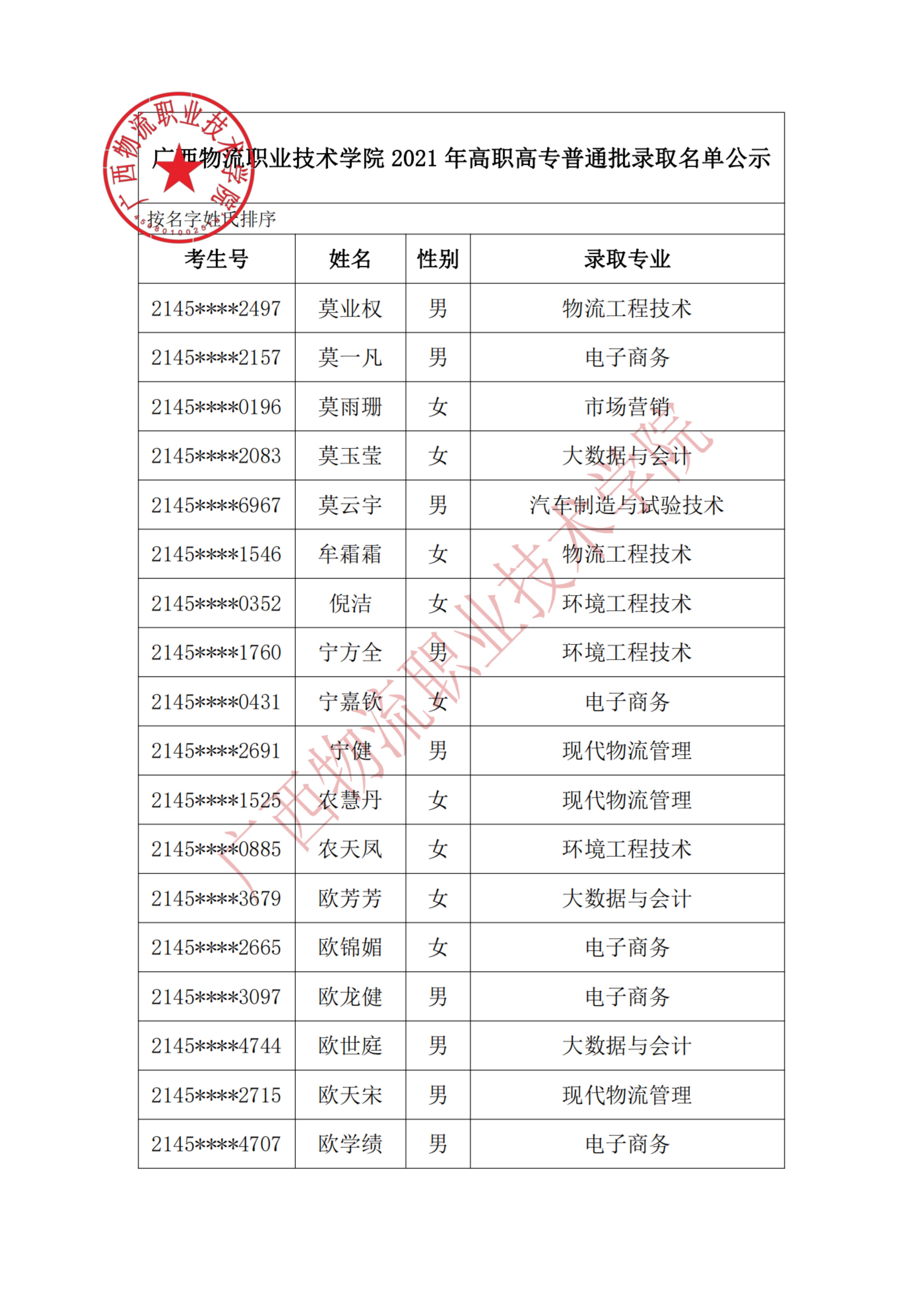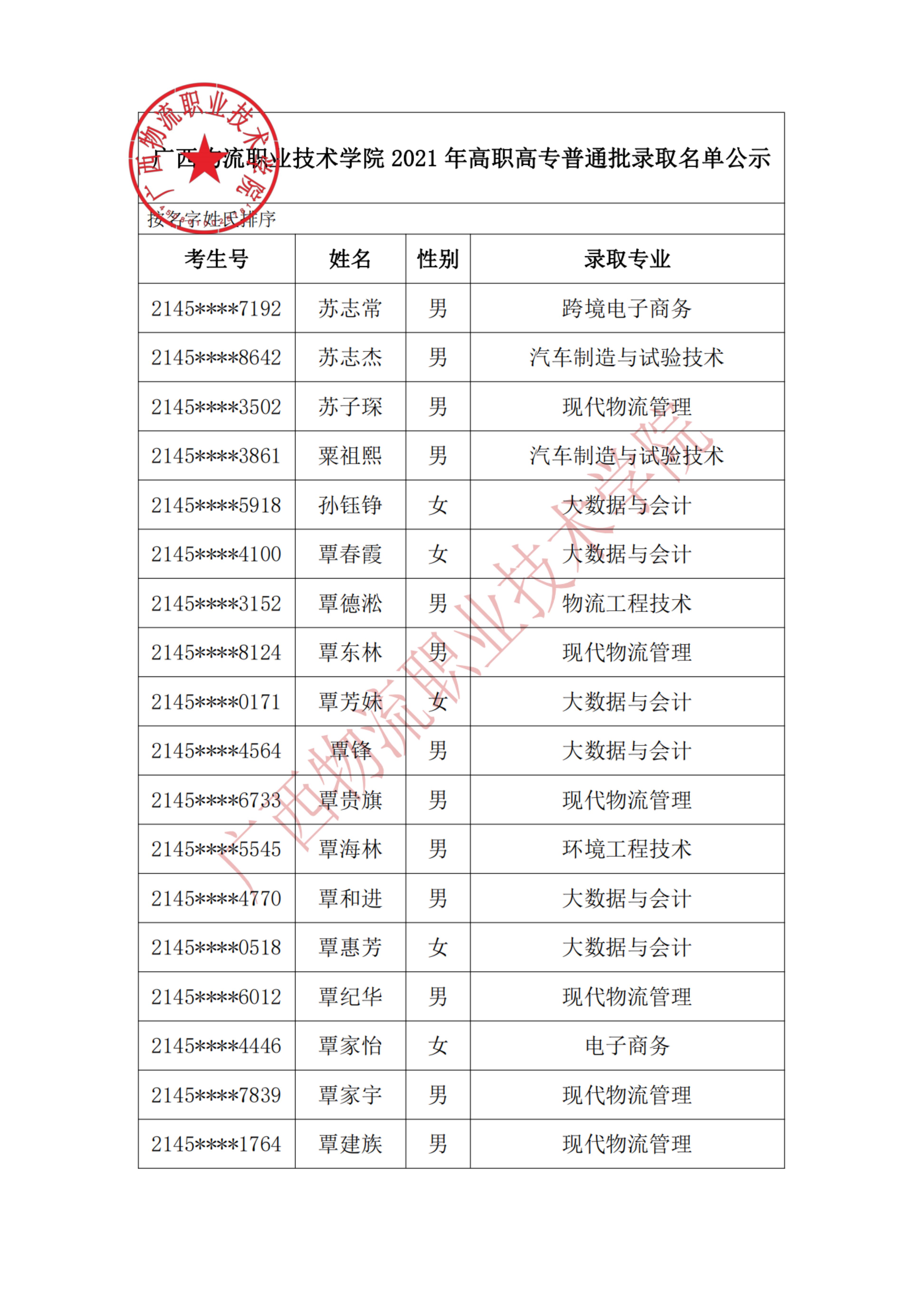 beat365在线唯一官网2021年高职高专普通批录取名单公示