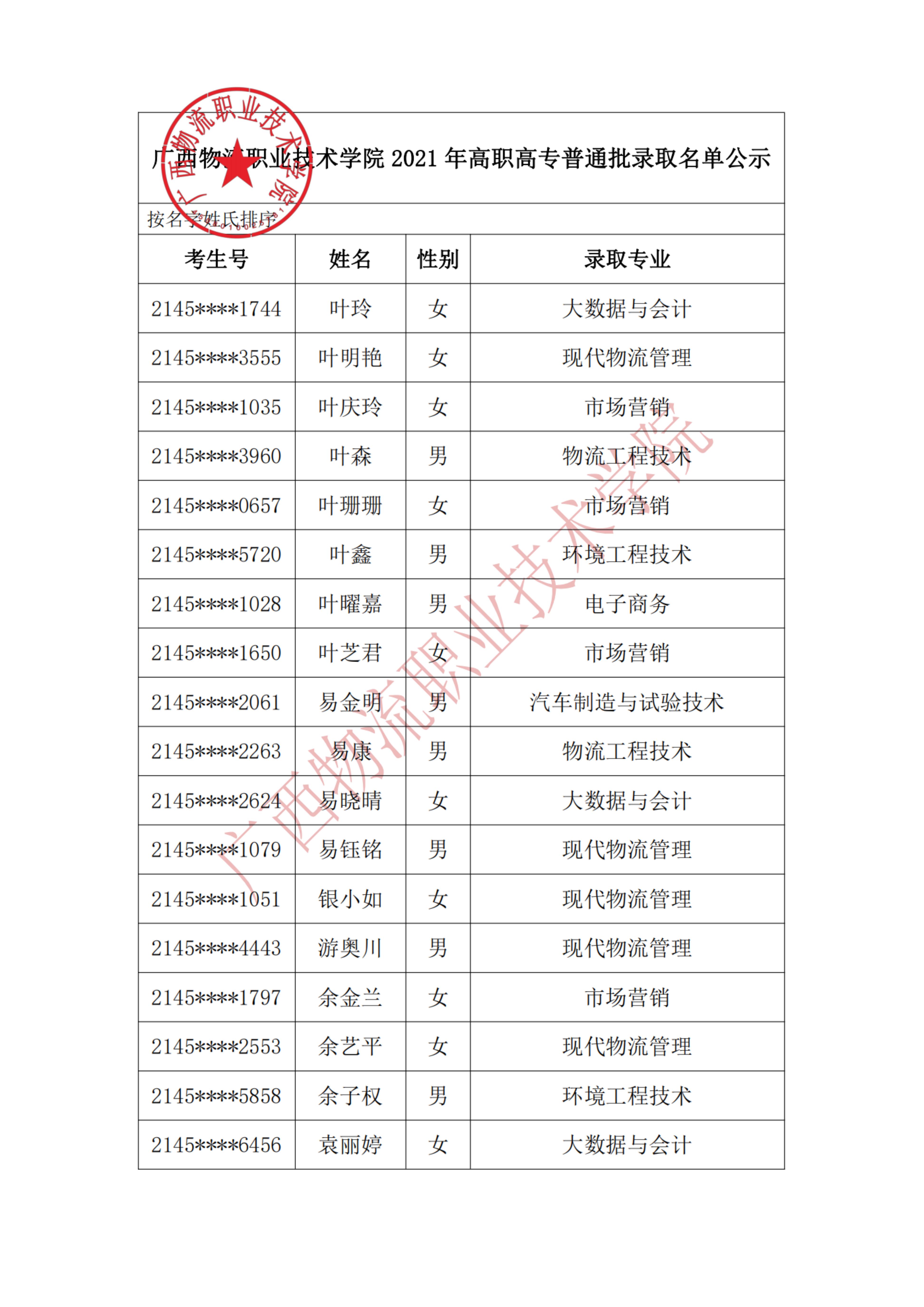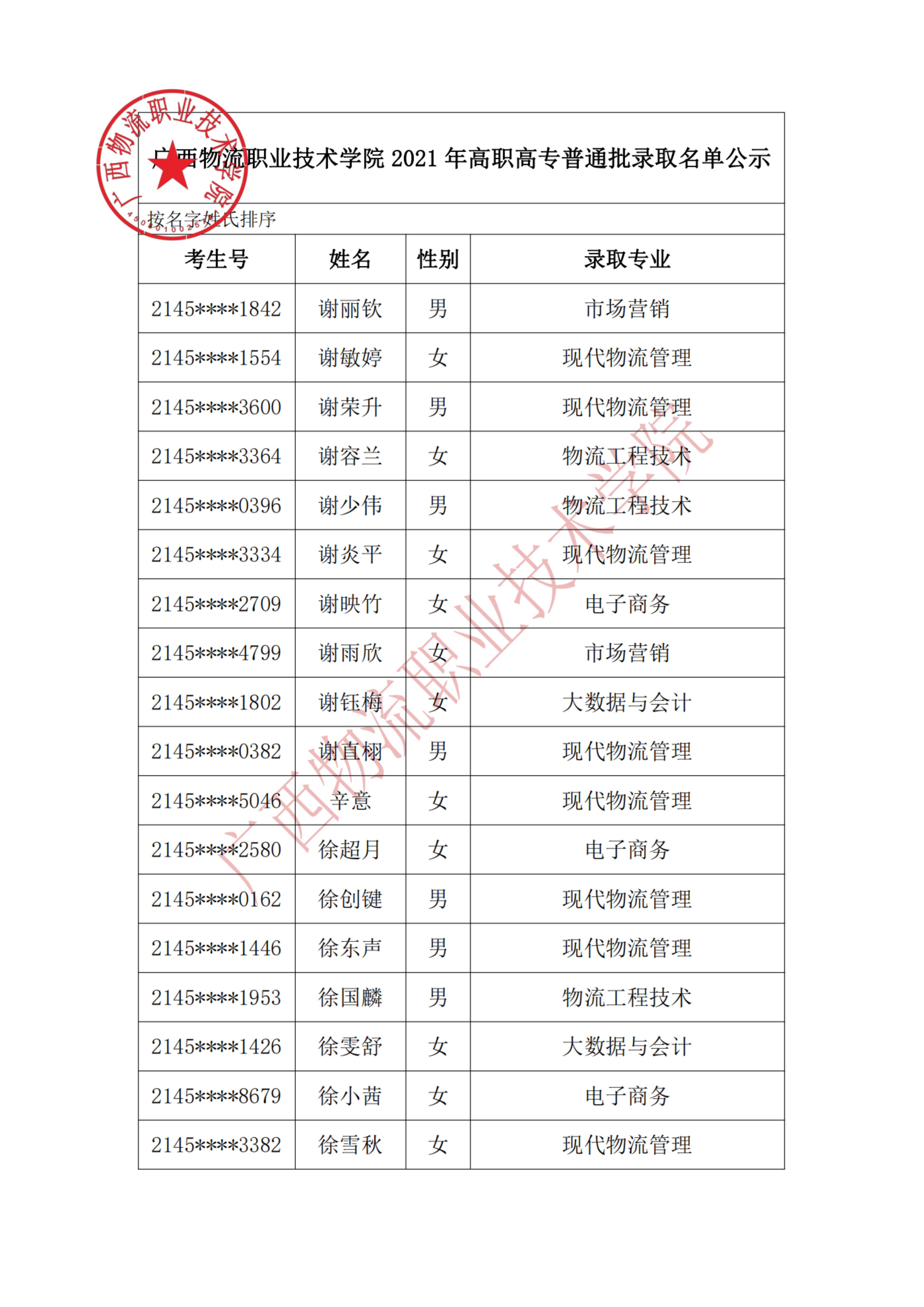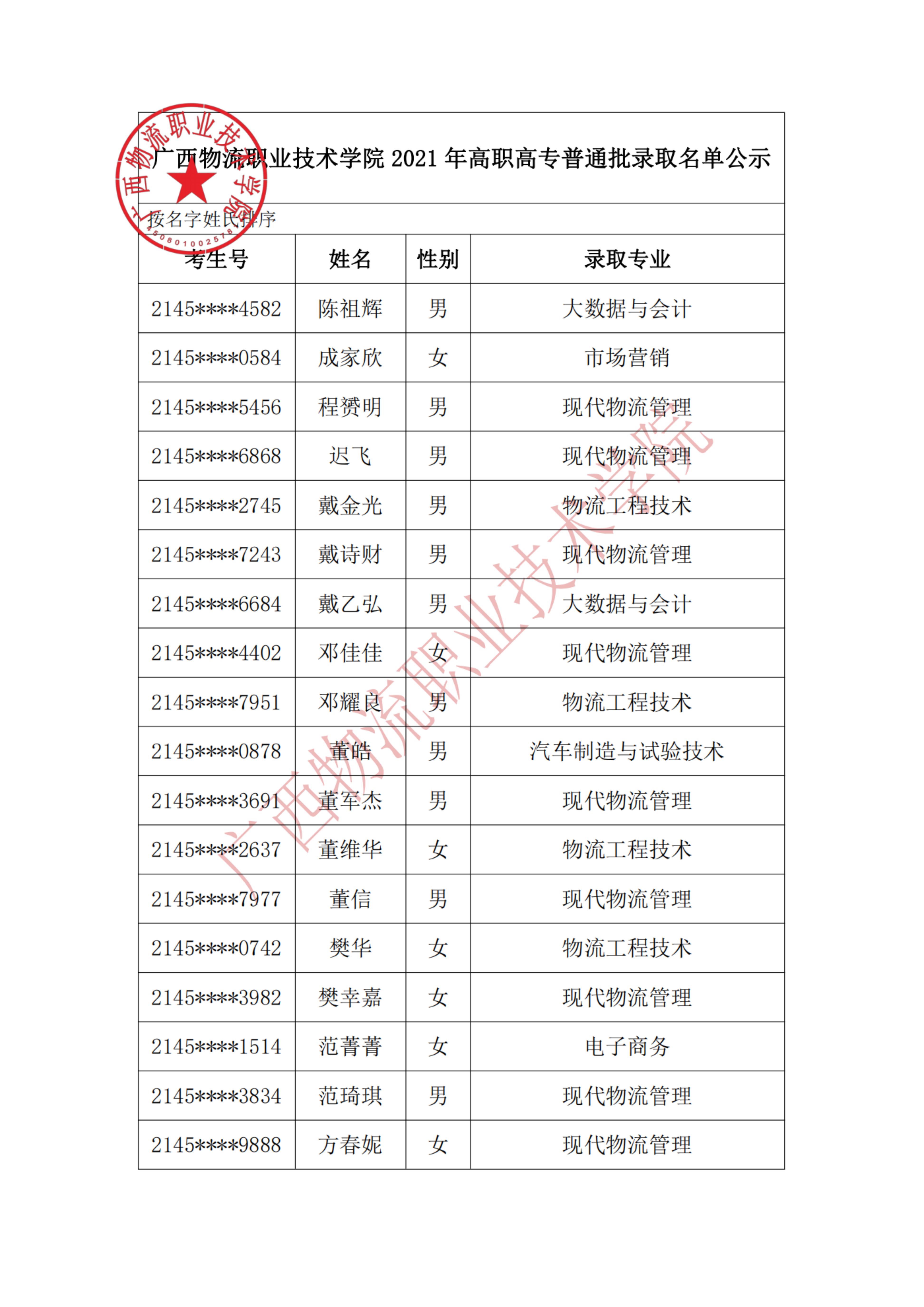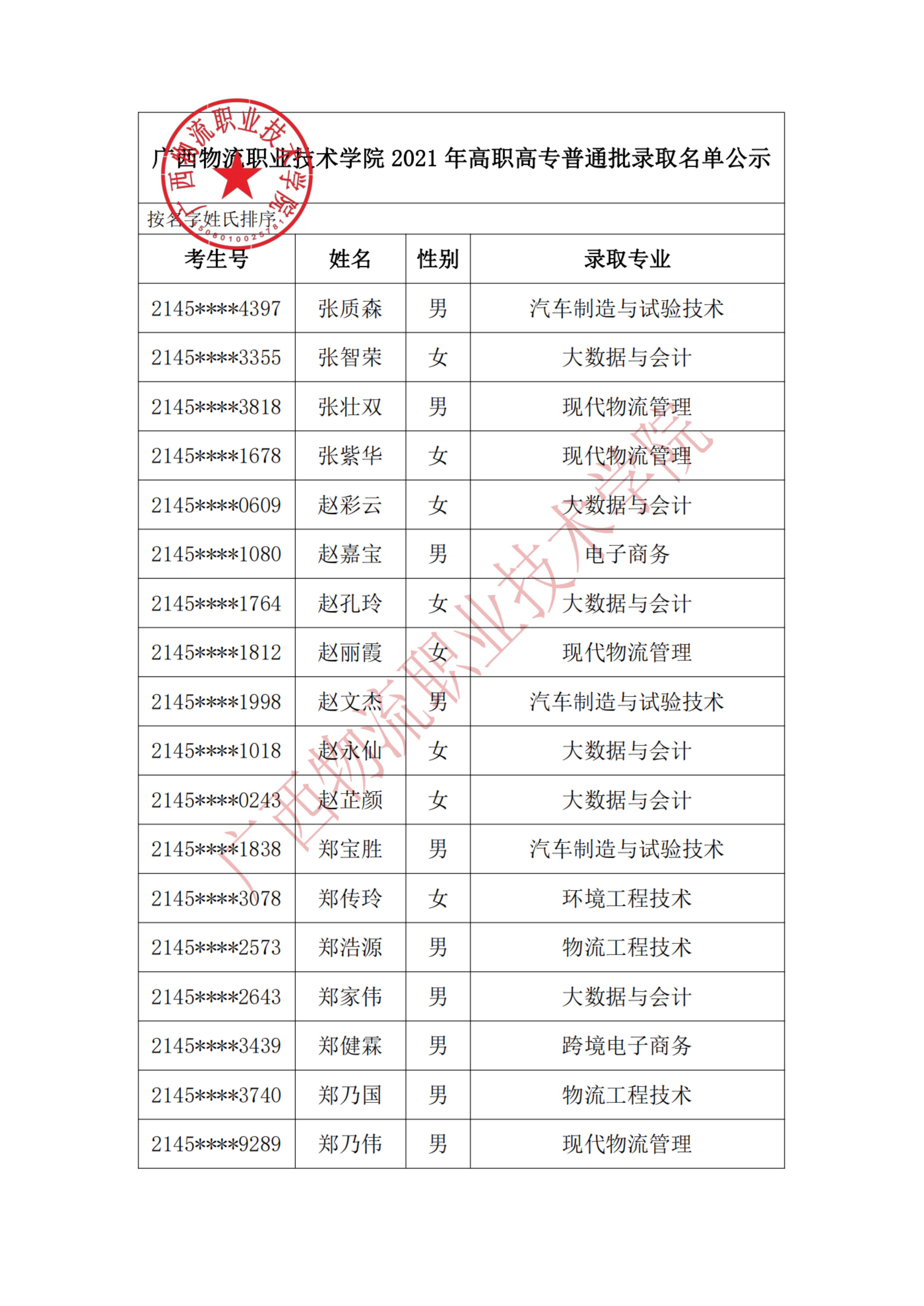 beat365在线唯一官网2021年高职高专普通批录取名单公示