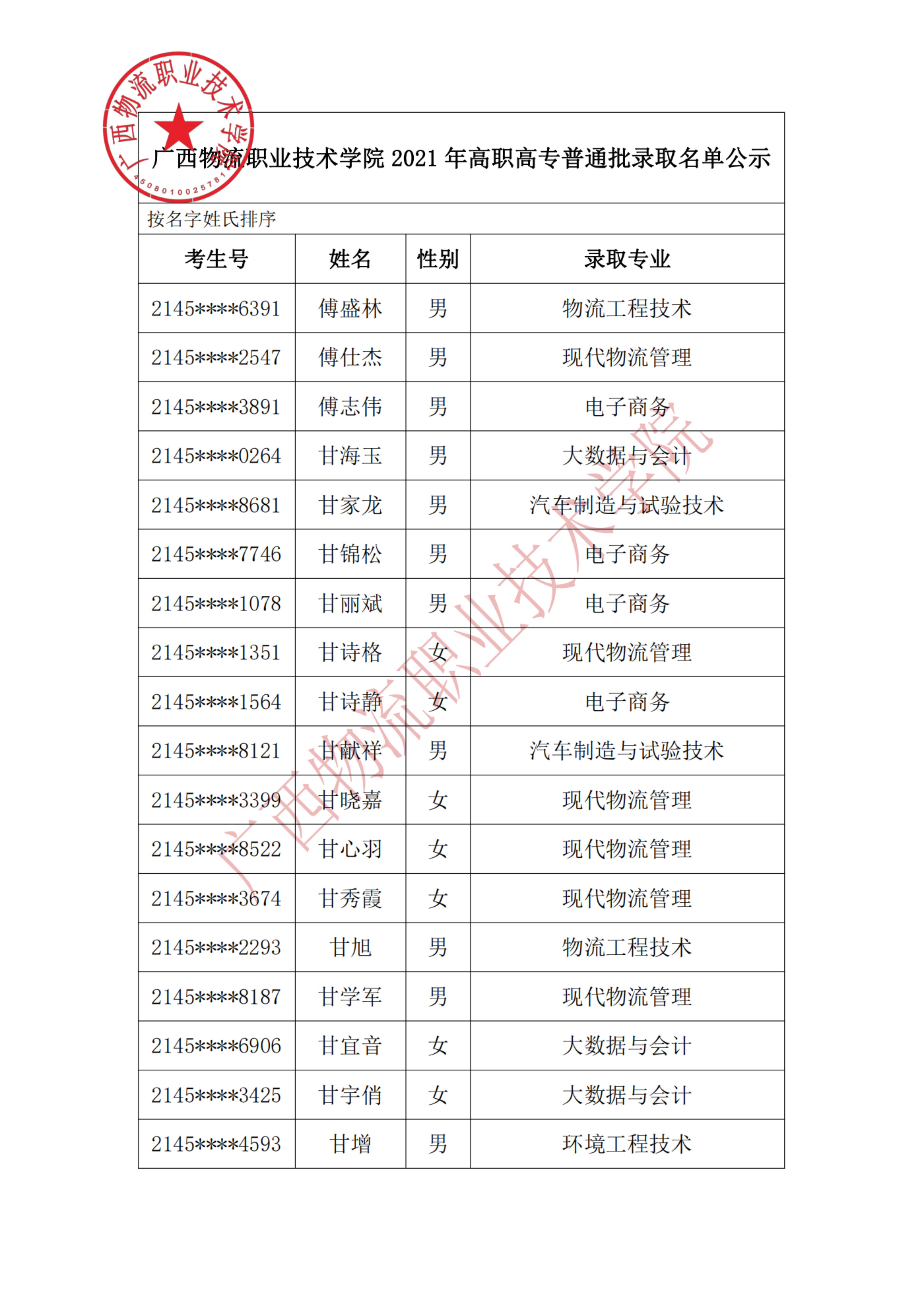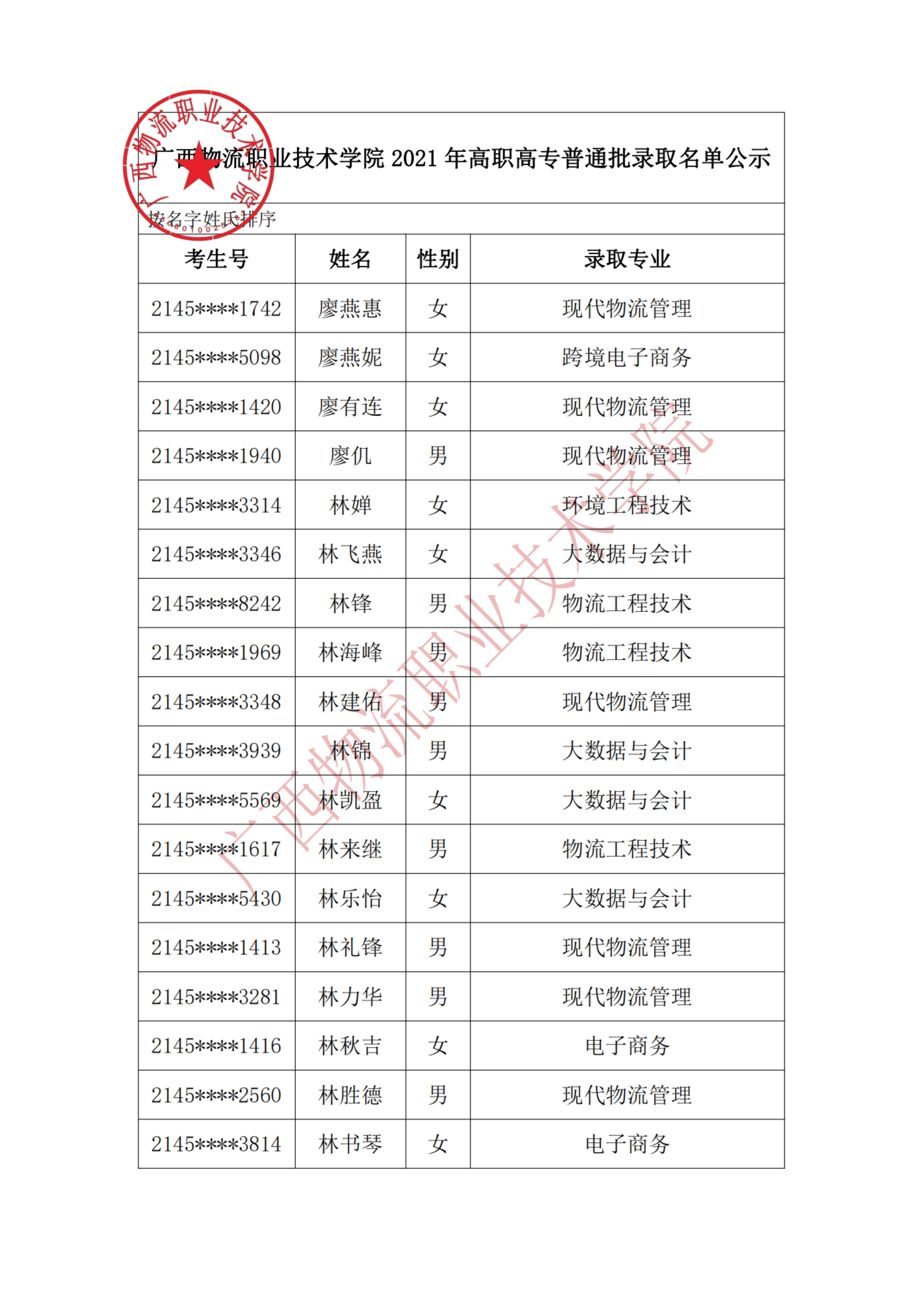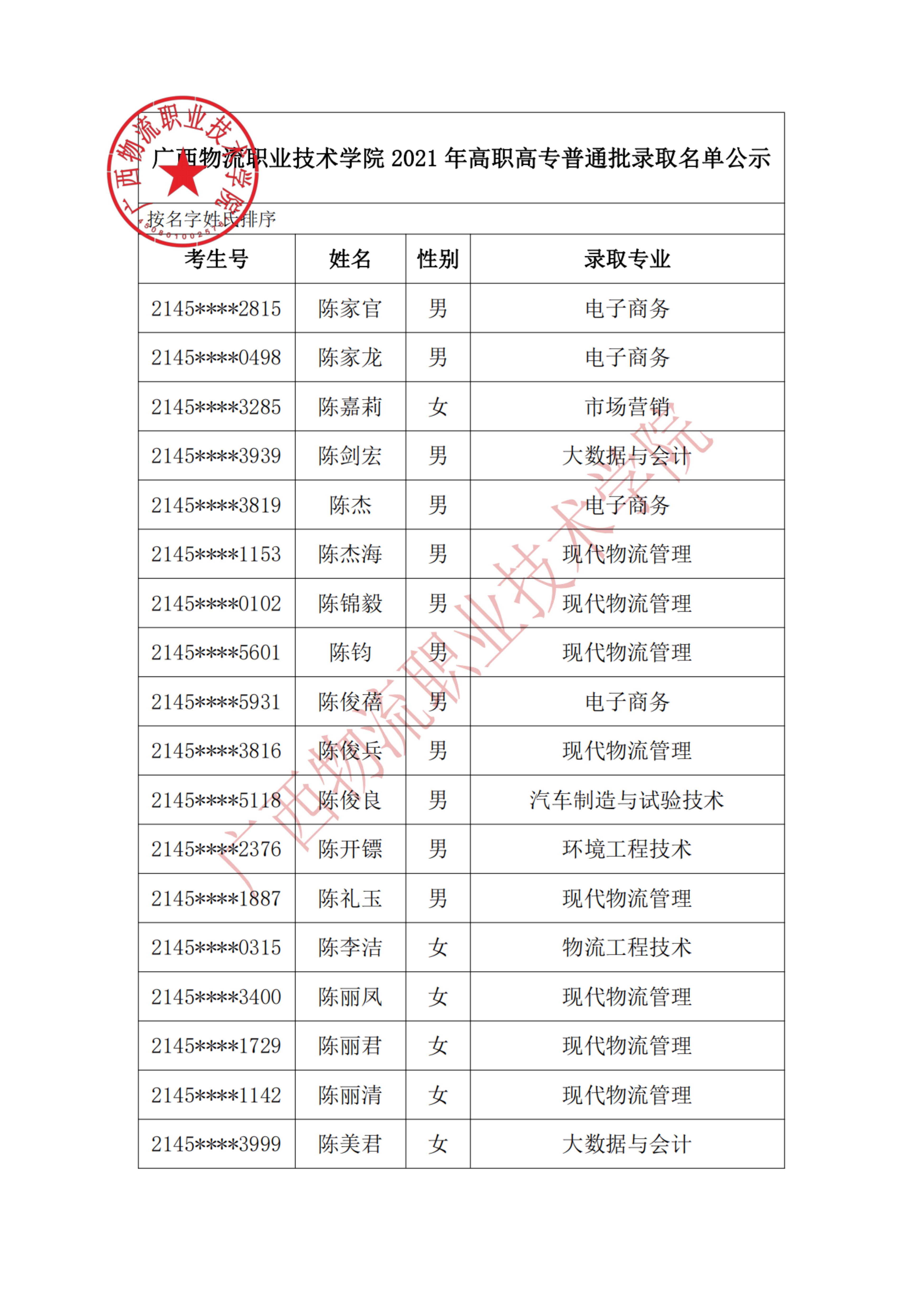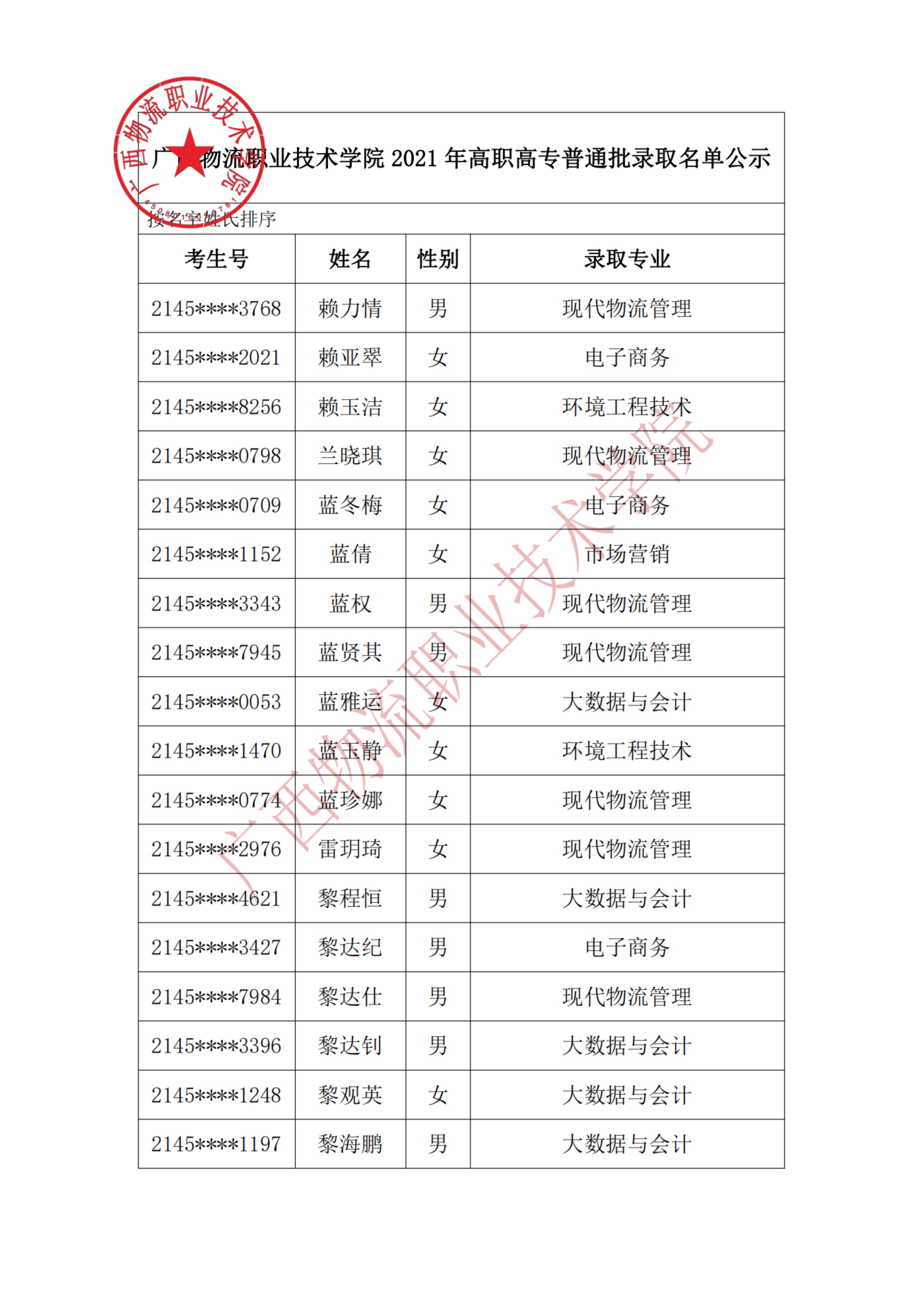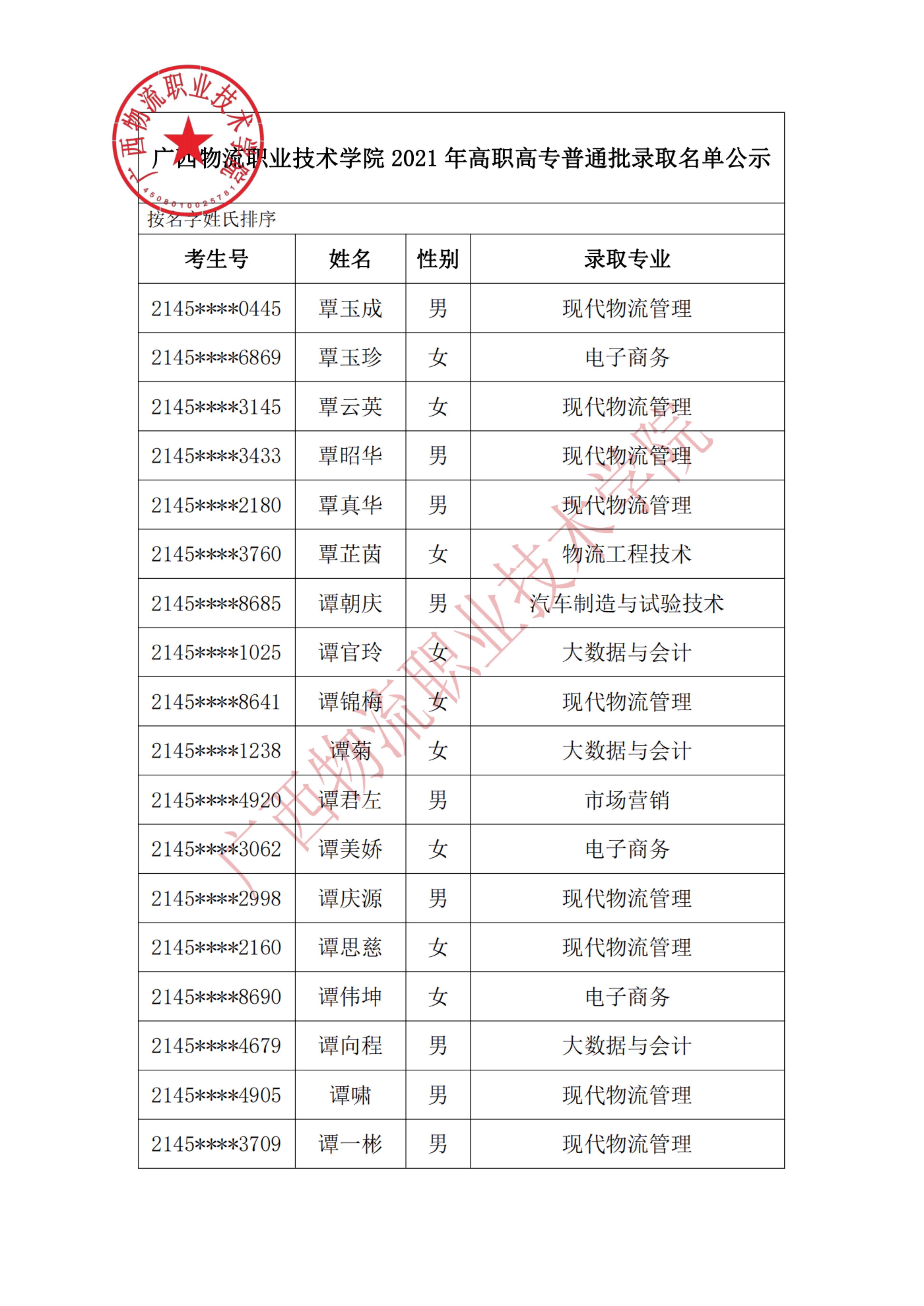 beat365在线唯一官网2021年高职高专普通批录取名单公示