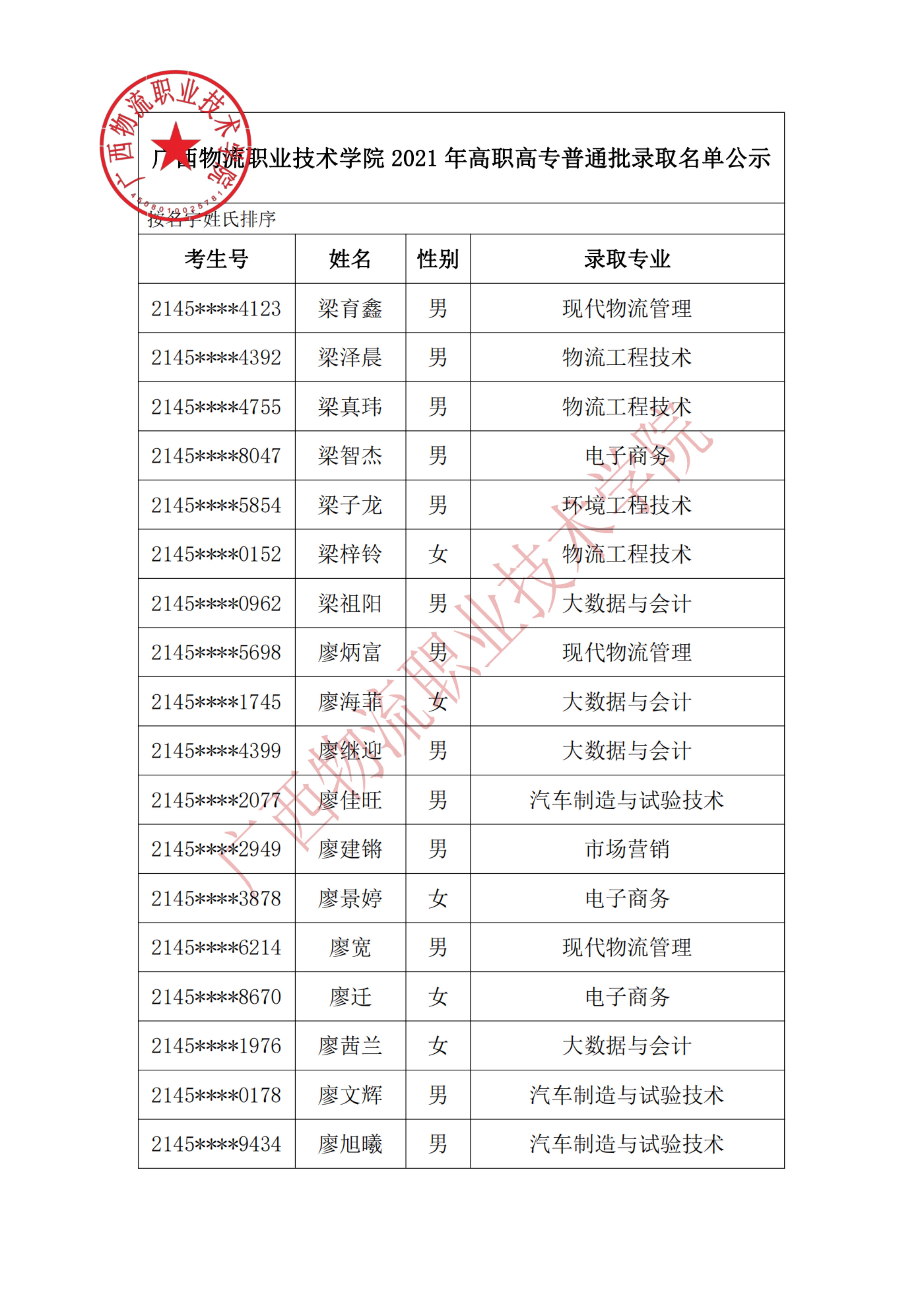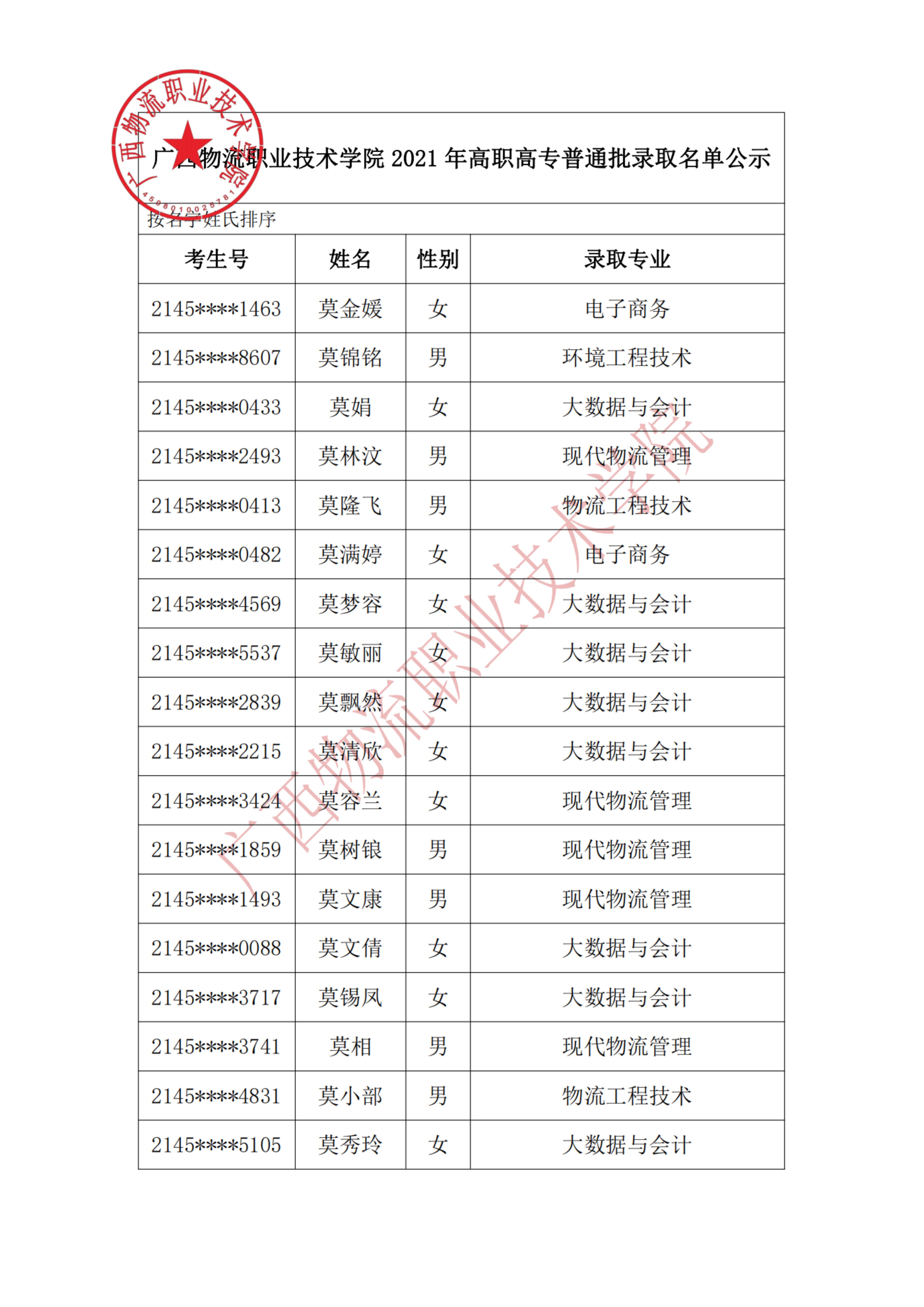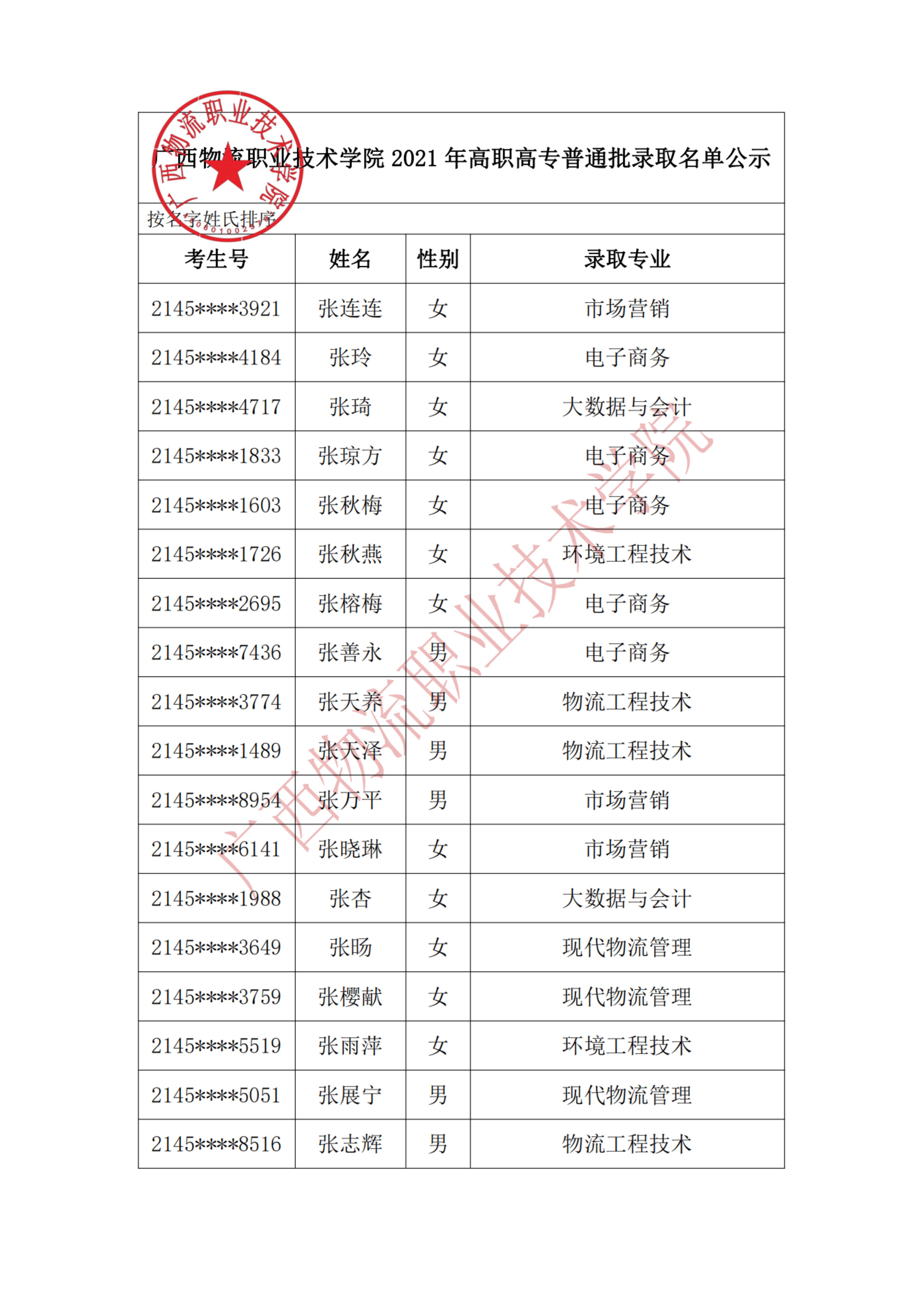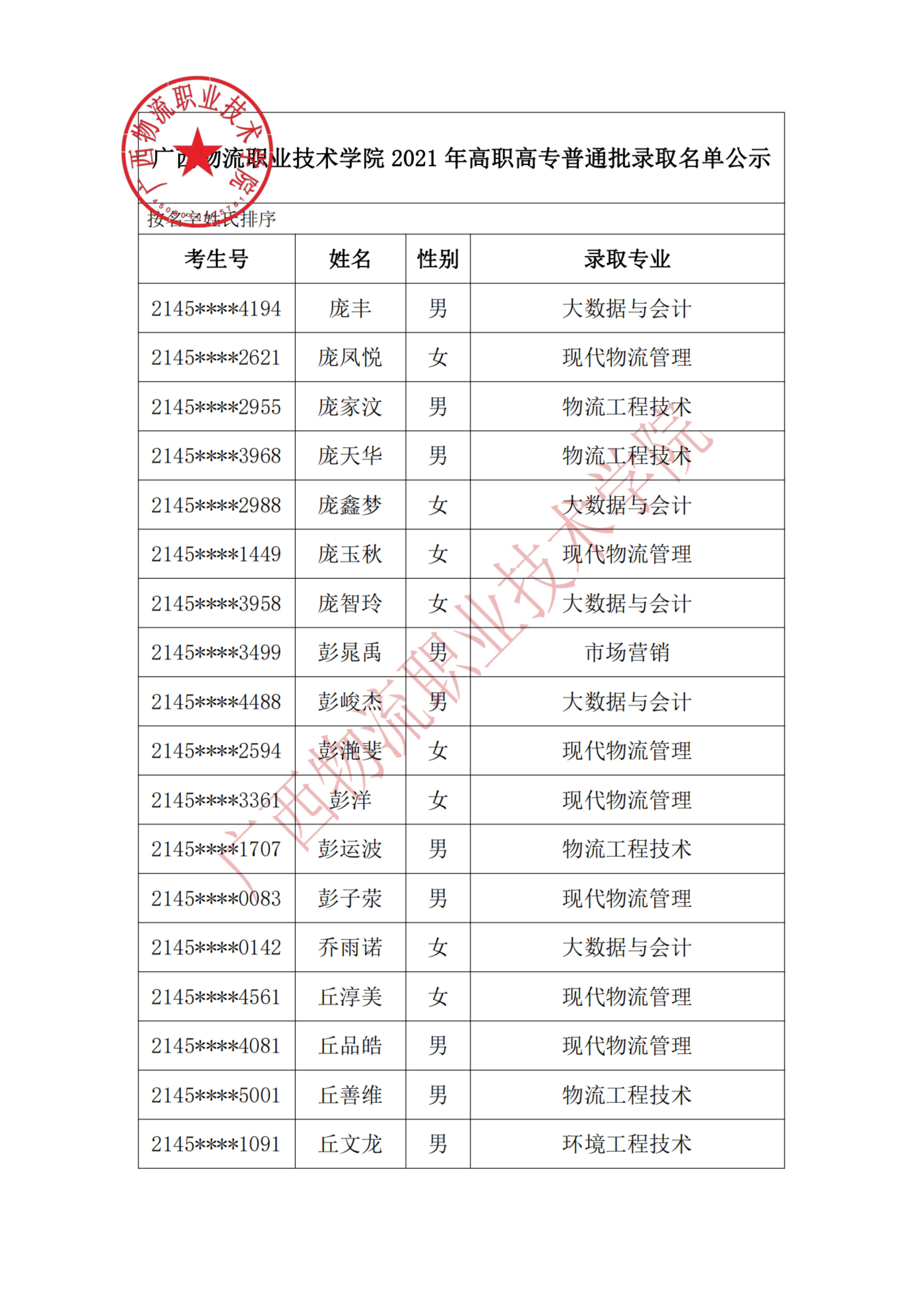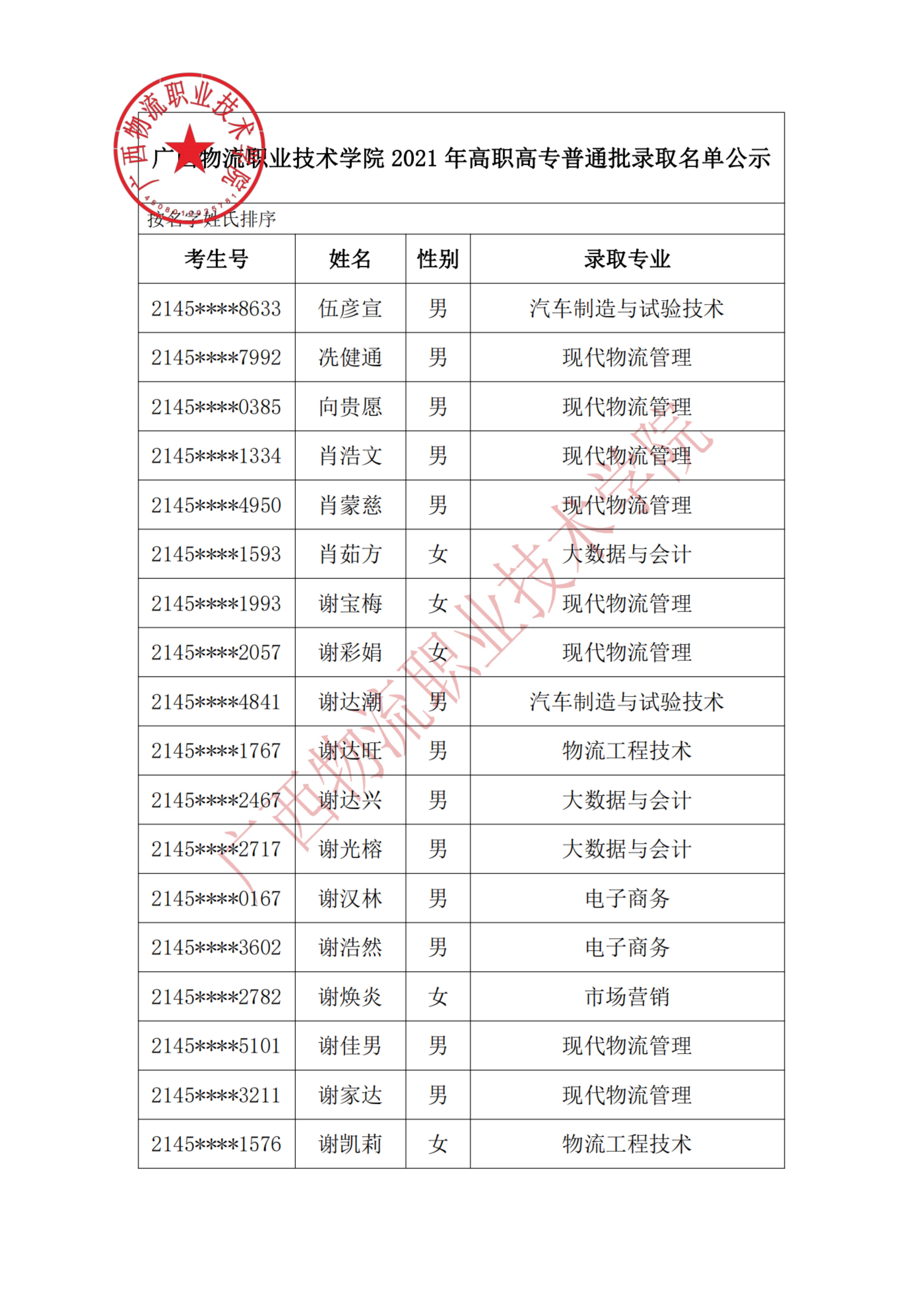 beat365在线唯一官网2021年高职高专普通批录取名单公示