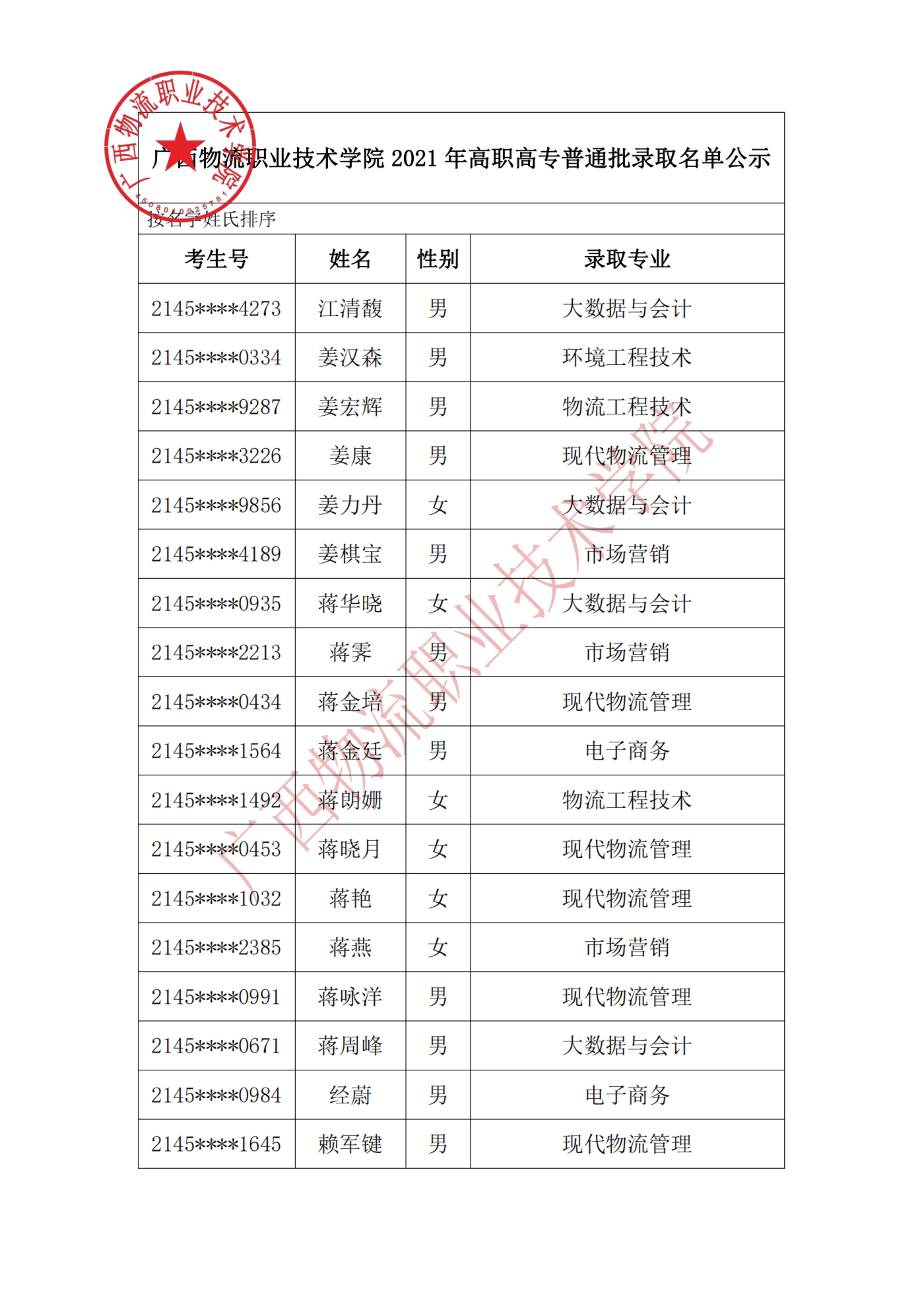 beat365在线唯一官网2021年高职高专普通批录取名单公示(源文链接)