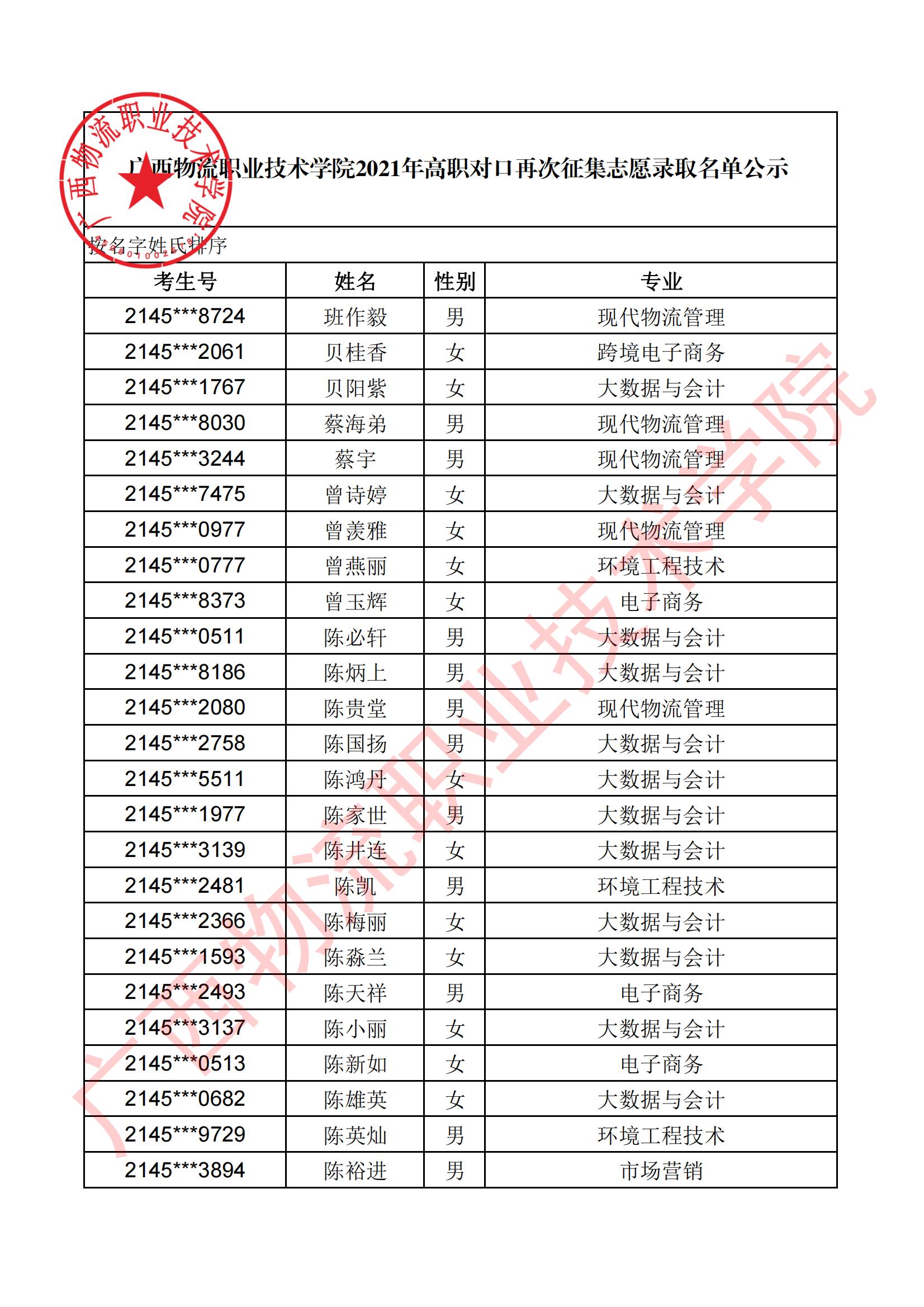 beat365在线唯一官网2021年高职对口再次征集志愿录取名单公示