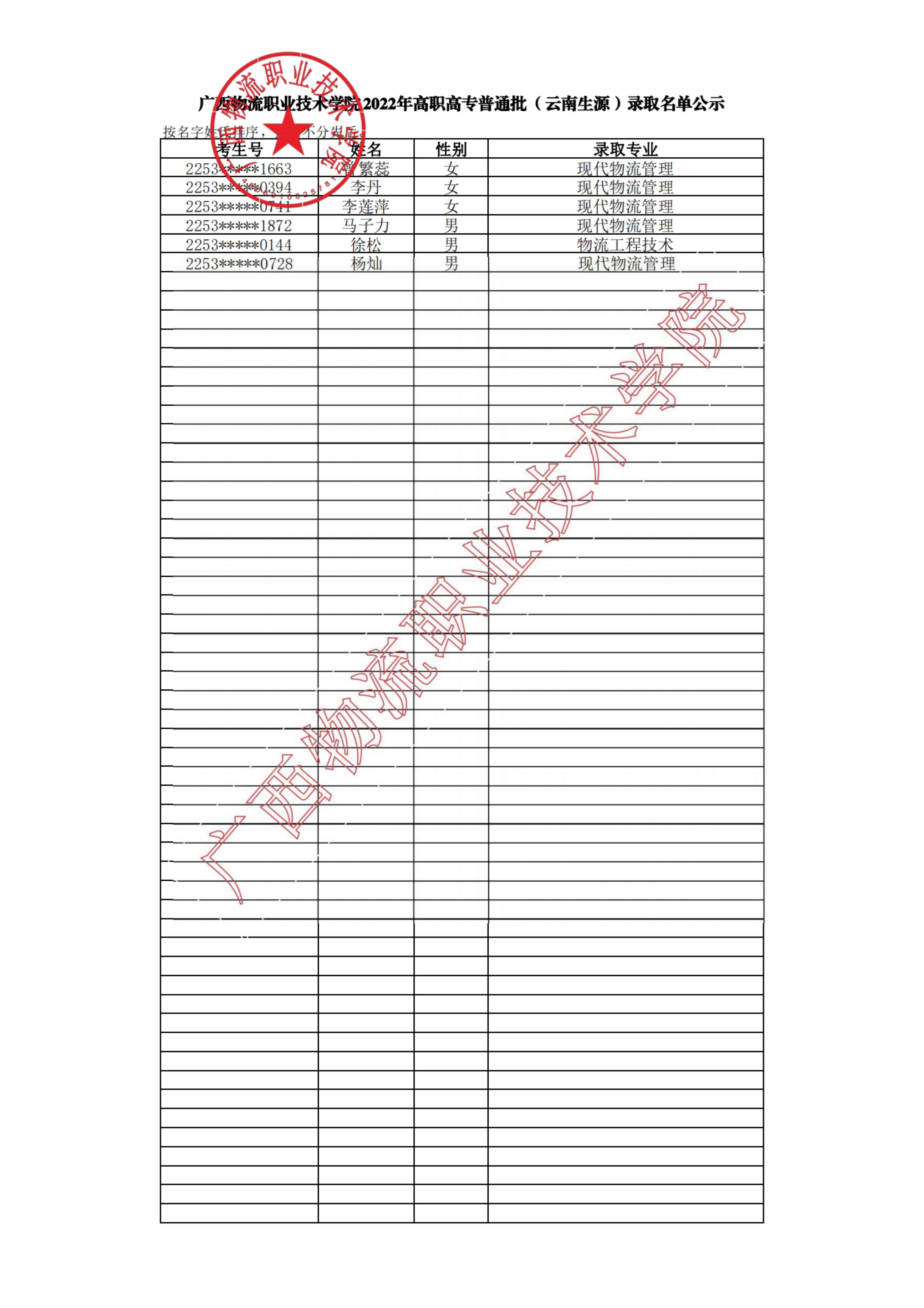 beat365在线唯一官网2022年高职高专普通批(云南生源)录取名单公示