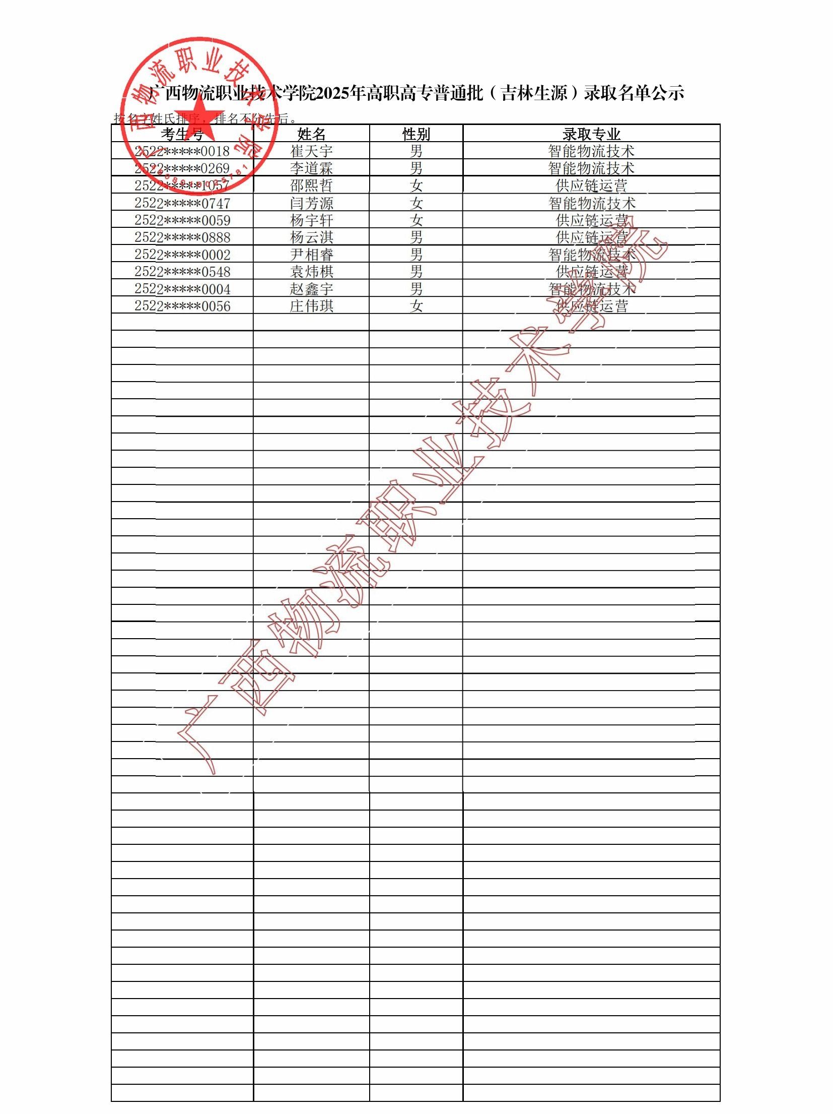 beat365在线唯一官网2025年高职高专普通批(吉林/山东生源)录取名单公示