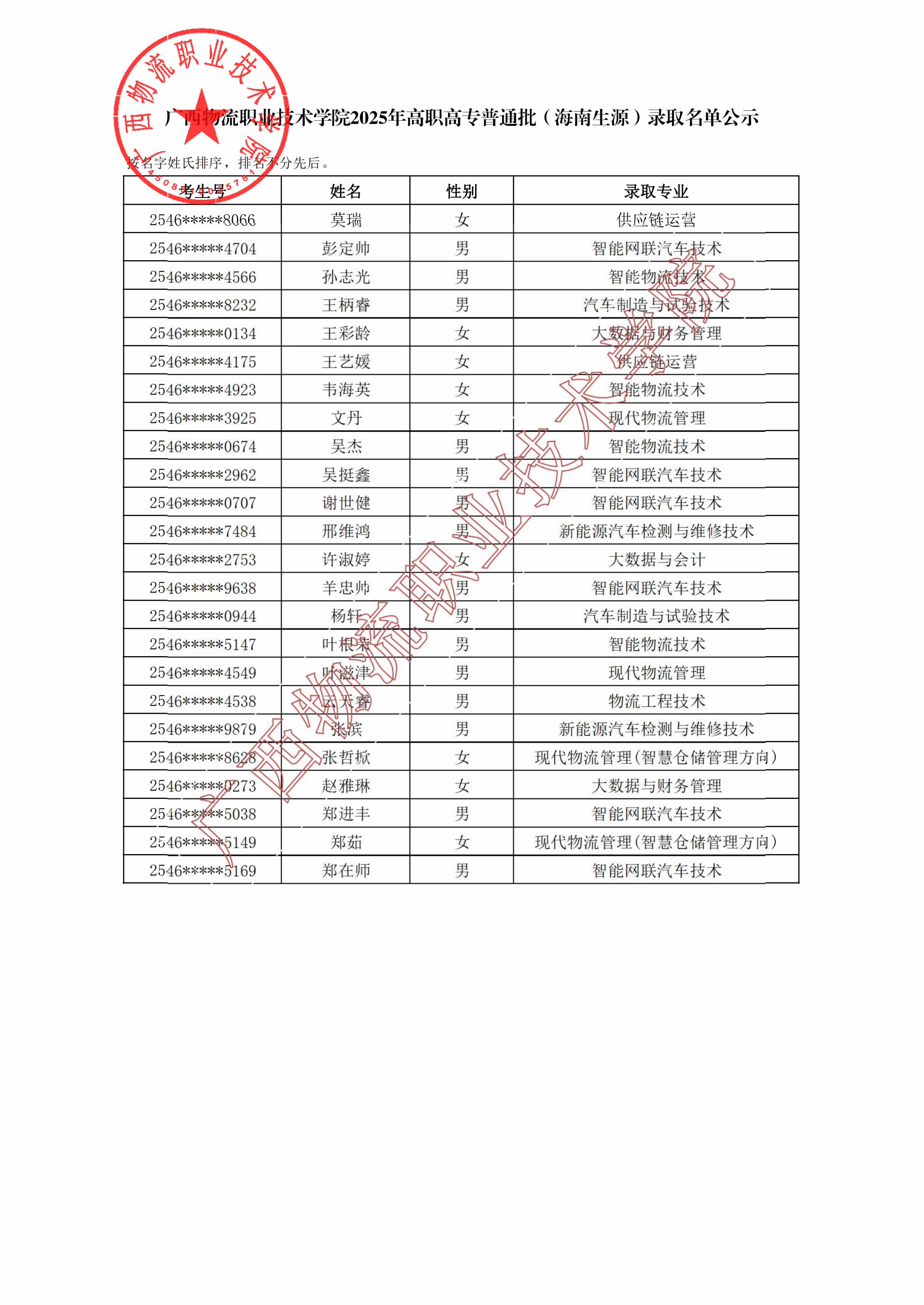 beat365在线唯一官网2025年高职高专普通批(海南生源)录取名单公示