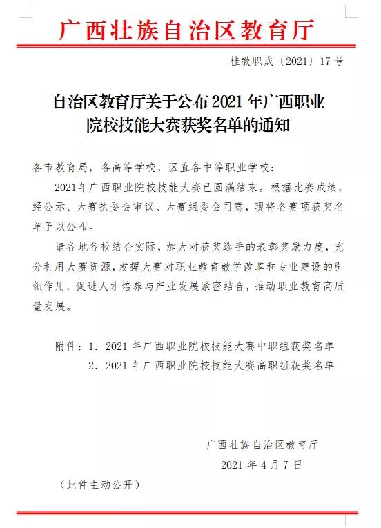 为提高学生技能实践水平,充分展示学院教学成果和学生风采,提高学生实践能力和创新能力,beat365官网组织师生参加2021广西职业院校技能大赛。