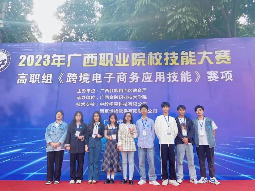 2023年广西职业院校技能大赛高职组《跨境电子商务应用技能》赛项中,beat365官网物流商学院派出2支参赛队共8名选手分别荣获团体赛二等奖和三等奖,这是beat365官网参加该赛项获得的最好成绩。