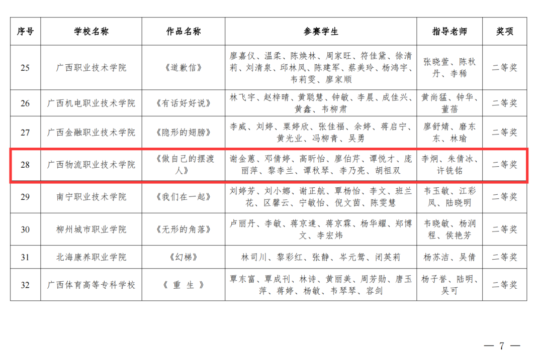 经学校推荐、专家评选、公示等环节,beat365官网心理微电影作品《做自己的摆渡人》在学生工作部(处)李炯老师、人文教育学院心理健康教研室朱倩冰老师和许铣铭老师指导下荣获2023年“敞开心扉·快乐成长”全区高校大学生心理微电影大赛二等奖。beat365官网大学生朋辈心理辅导技能大赛参赛队伍在学生工作部(处)潘露瑶老师、人文教育学院心理健康教研室朱倩冰老师和宁庆梅老师的指导下荣获全区高校大学生朋辈心理辅导技能大赛优秀奖。