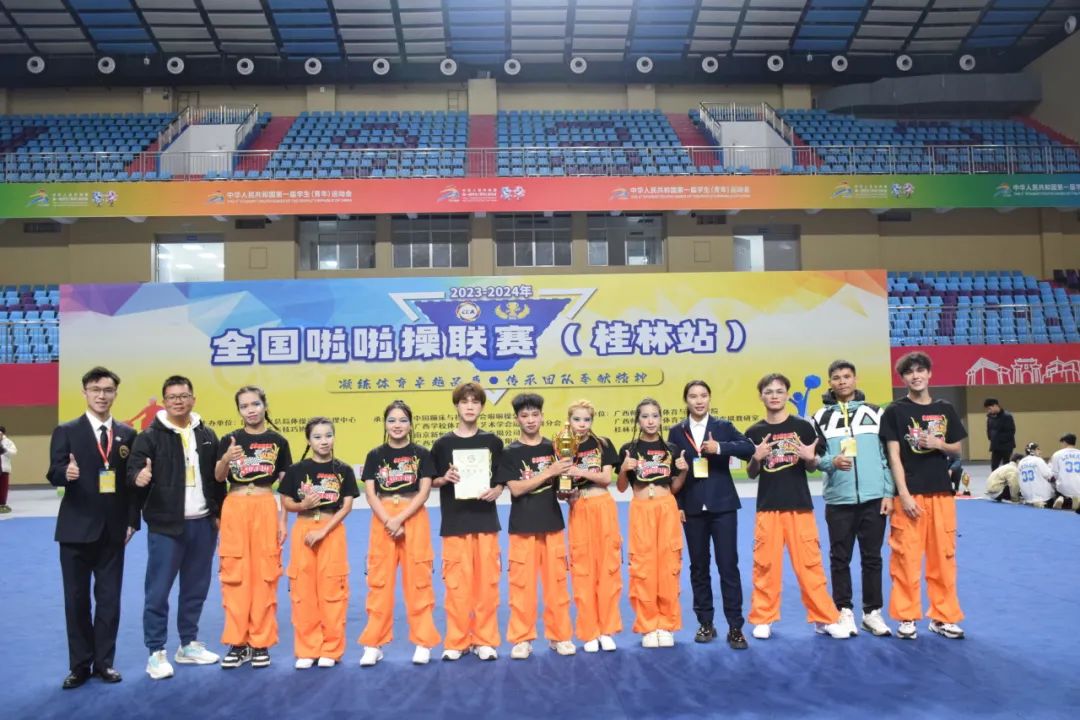 2023年12月1日至3日,国家体育总局体操运动管理中心主办的2023-2024年全国啦啦操联赛(桂林站)在广西师范大学圆满结束,共有来自全国45所高等院校的102支队伍,2000多名选手参加了本次比赛。经过两天的角逐,beat365官网代表队荣获以下奖项: