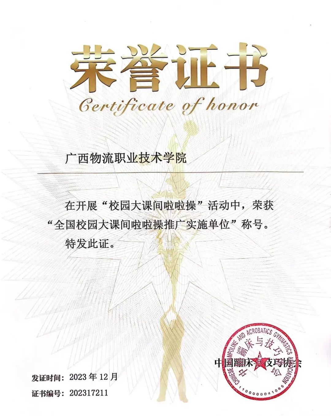 3.beat365在线唯一官网被中国蹦床与技巧协会授予“全国校园大课间啦啦操推广实施单位”称号。
