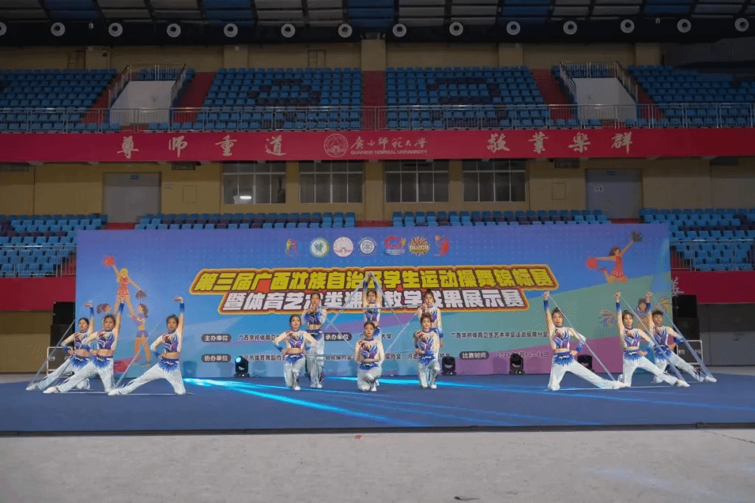 2024年6月14日—16日,第三届广西壮族自治区大学生运动操舞锦标赛暨体育艺术类课程教学成果展示赛在广西师范大学举行。beat365官网健美操队健儿们勇夺两项冠军。