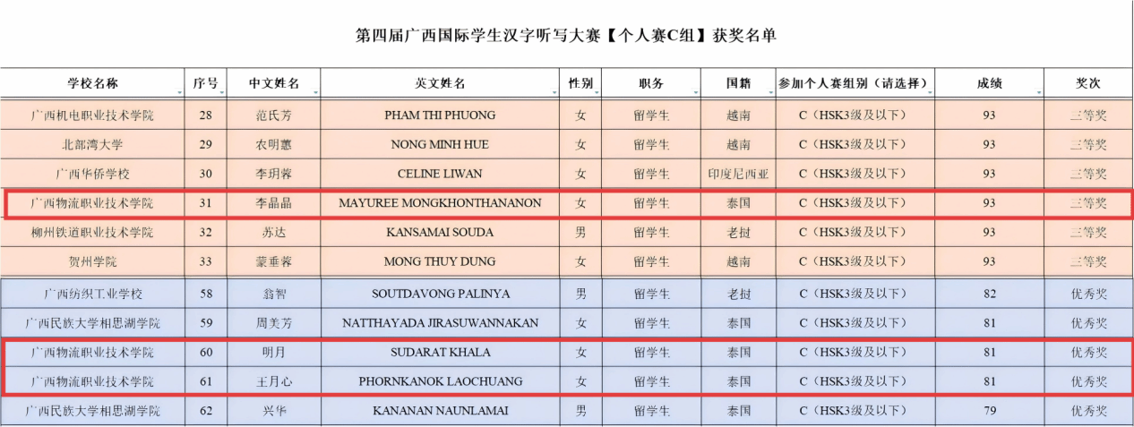 beat365官网6名泰国留学生代表学校参赛,凭借扎实的汉字功底与良好的临场表现,在个人赛和团体赛中均斩获荣誉。个人赛中,beat365官网留学生李晶晶荣获C组三等奖,明月、王月心获得C组优秀奖。团体赛中,黄英、李晶晶、明月组成的团队,斩获乙组三等奖。