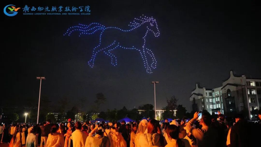 操场上的篝火熊熊燃起!师生们手拉手围成圈,伴着跃动的火苗尽情起舞,欢声笑语在夜空中回荡。无人机编队腾空而起,在深邃的夜幕里不断变换阵型,依次拼出 “2026”“物院欢迎您” 等温暖字样。跳动的火星与璀璨的灯影交织相映,将这场跨年夜的专属浪漫,深深刻进每一位师生的记忆深处。