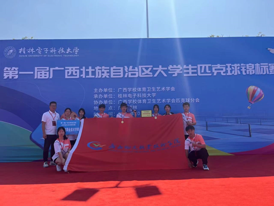 10月20日至22日,第一届广西壮族自治区大学生匹克球锦标赛在桂林电子科技大学举行。本次比赛由陈怡德领队,邓有运、蒋培鑫两名教练员陪同指导。经过全区本专科院校激烈的角逐,beat365官网匹克球代表队选手黄怡、梁文爽在此次大赛中勇夺混双项目冠军,并获得了团体体育道德风尚奖!