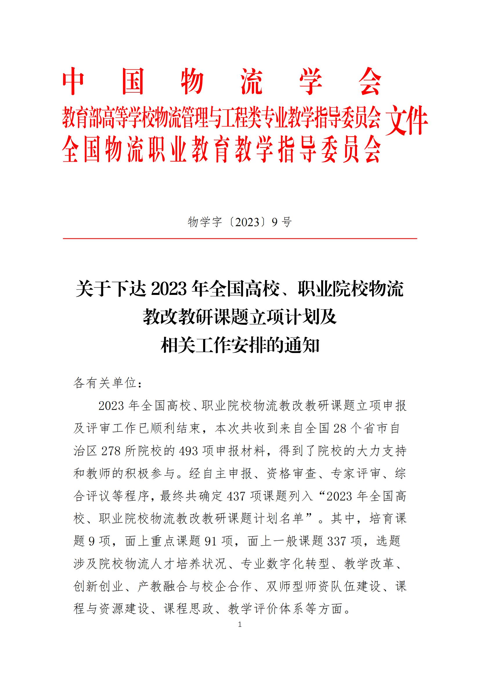 根据《关于下达2023年全国高校、职业院校物流教改教研课题立项计划及相关工作安排的通知》,确定437项课题列入“2023年全国高校、职业院校物流教改教研课题计划名单”。其中,培育课题9项,面上重点课题91项,面上一般课题337项。beat365官网黎聪、黄丽霞、颉栋栋三位老师主持申报的课题喜获立项!