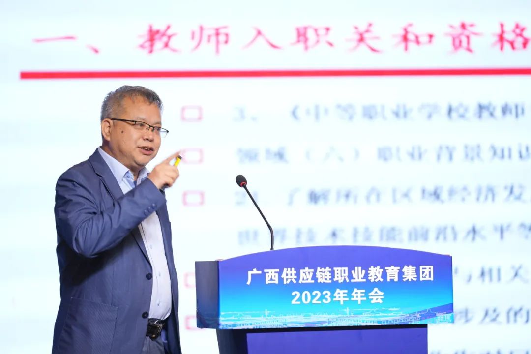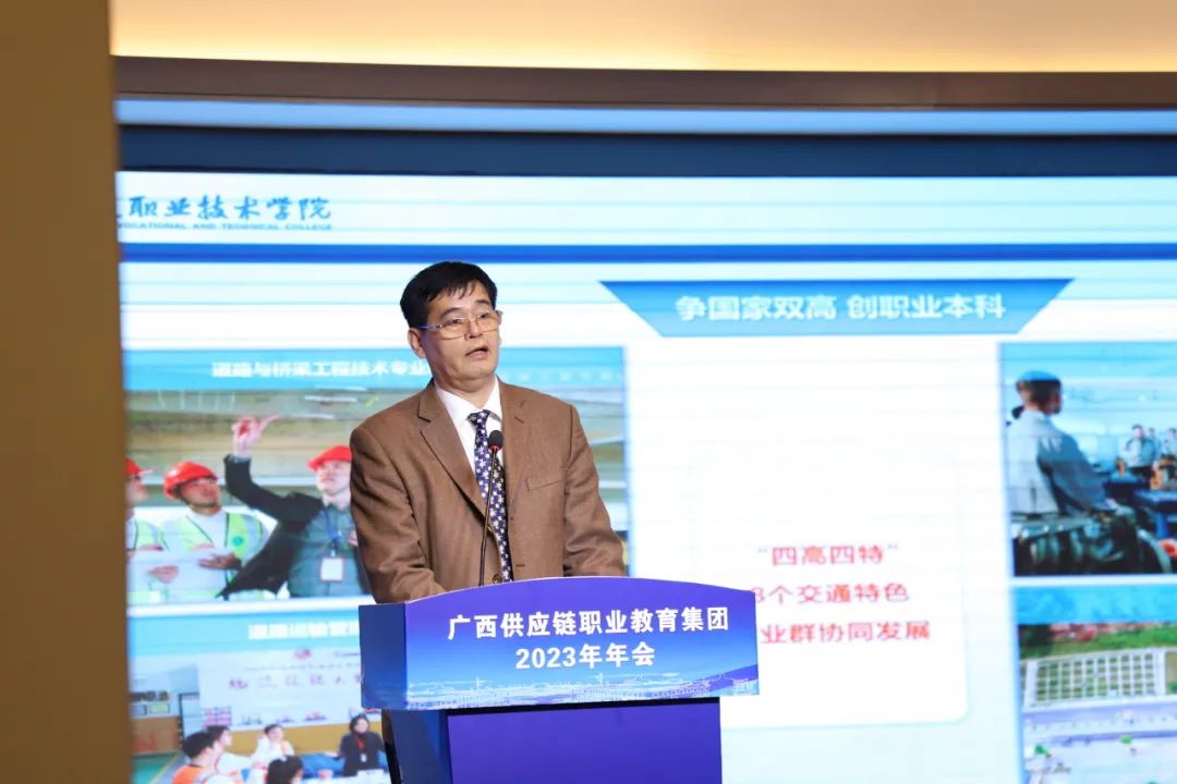 2023年12月14日下午,广西供应链职业教育集团2023年年会邀请了中国职业技术教育学会副会长丁金昌等12位专家作主旨发言,论坛由广西自然资源职业技术学院党委副书记、校长冯兵主持。