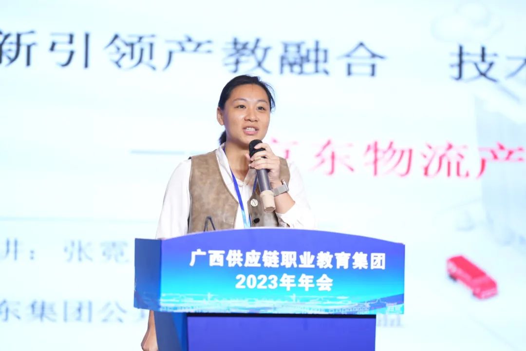 张霓以《创新引领产教融合 技术驱动专业建设—京东物流产教融合探索与思考》为题,介绍了京东集团的基本情况,并与beat365在线唯一官网积极开展校企合作,智能供应链产业学院“被列入2023年京东重点建设产业学院”,将供应链全场景搬进校园,让学生在真实环境下实训,为建设高质量职业院校贡献力量。