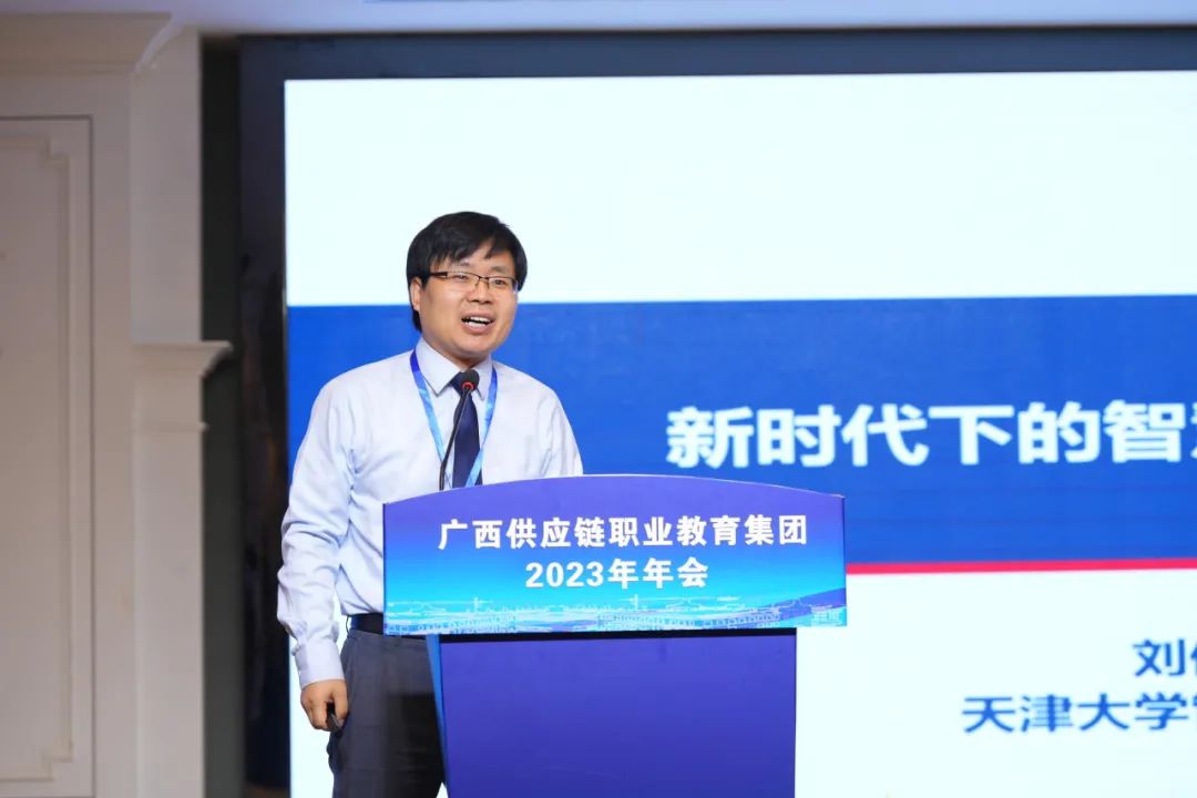 2023年12月14日上午,广西供应链职业教育集团2023年年会邀请了清华大学教授刘大成、天津大学教授刘伟华作专题报告,专题报告由柳州职业技术学院副校长韦林主持。