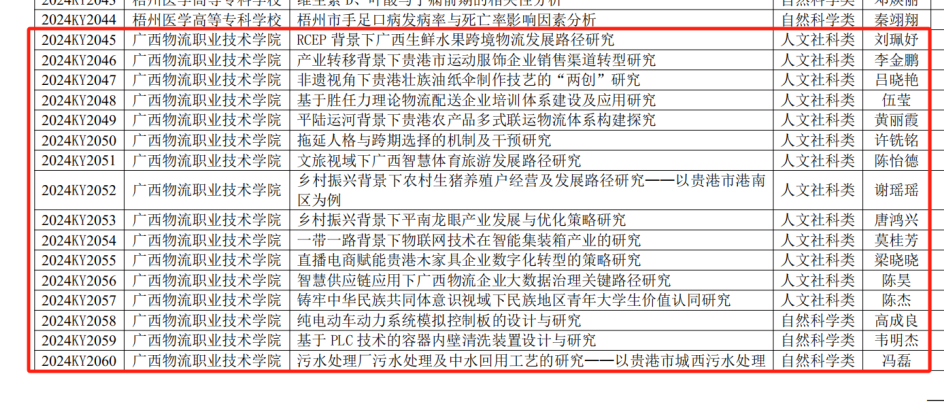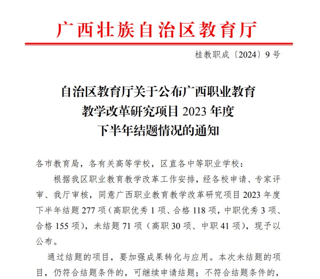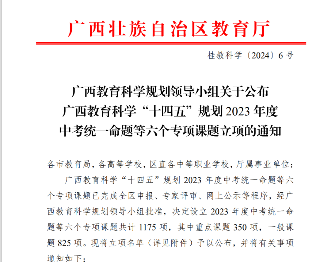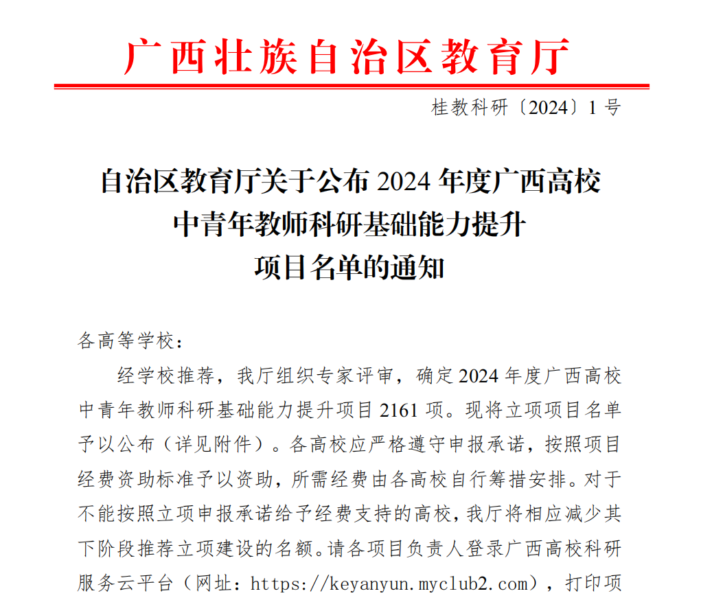 根据《广西教育科学规划领导小组关于公布广西教育科学“十四五”规划2023年度中考统一命题等六个专项课题立项的通知》、《自治区教育厅关于公布2024年度广西高校中青年教师科研基础能力提升项目名单的通知》,beat365官网共有25项课题立项,其中广西教育科学“十四五”规划2023年度中考统一命题等六个专项课题5项课题立项,2项为专项重点课题,20位老师主持申报的2024年度广西高校中青年教师科研基础能力提升项目全部喜获立项。