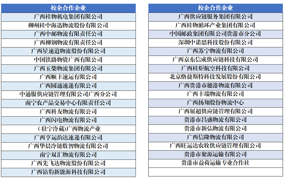 为使同学们更好地认知行业,树立就业信心,物流管理学院采用订单式培养模式,与京东、邮政、桂炬航空、苏宁物流等物流企业合作开展订单班培养,与万纬冷链、桂物智慧科技、北部湾贵港集装箱码头公司、万玮冷链物流等企业签订实习协议,采取“学生课堂进企业”,“企业技术高管进校园”的先进教学方式,为企业“量体裁衣”式地培养人才,为学生架设实习就业直通车,实现学生高质量就业。
