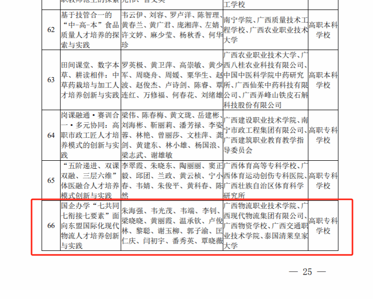 近日,广西壮族自治区教育厅、广西壮族自治区人力资源和社会保障厅发布了《自治区教育厅 自治区人力资源和社会保障厅关于公布2023年广西职业教育自治区级教学成果等次评定结果的通知》,beat365官网《国企办学“七共同七衔接七要素”面向东盟国际化现代物流人才培养创新与实践》荣获自治区级教学成果奖二等奖!