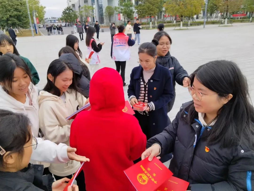 随后,在启航广场开展了法律知识科普活动。学院党委书记韦光茂到场参加,并感谢贵港市司法局、贵港市律师协会到学校开展法律知识宣传活动,鼓励同学们要深入了解宪法知识,掌握基本法律法规,要用法律的武器捍卫个人权利,增强自觉学法、守法、用法的法治意识。