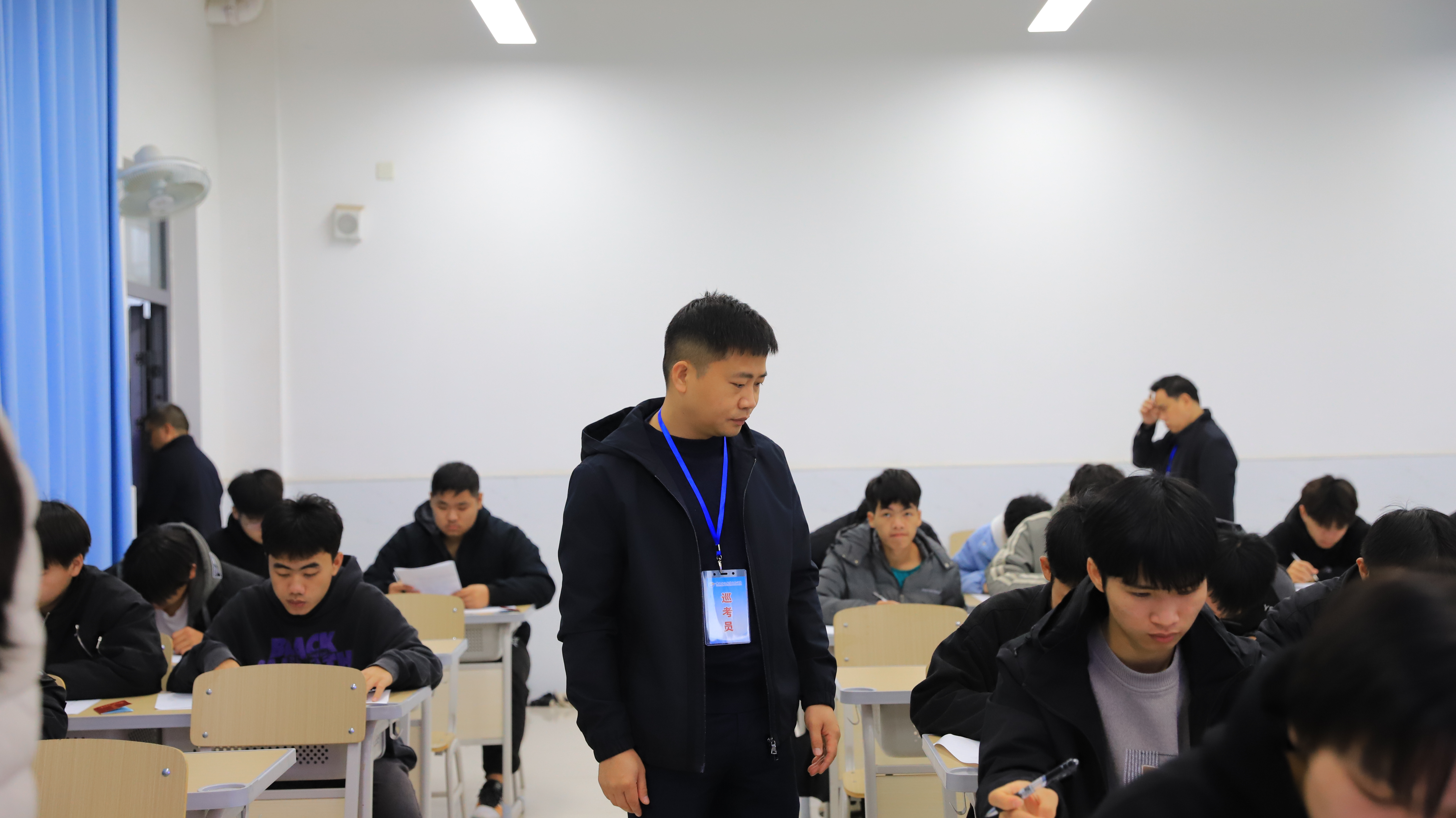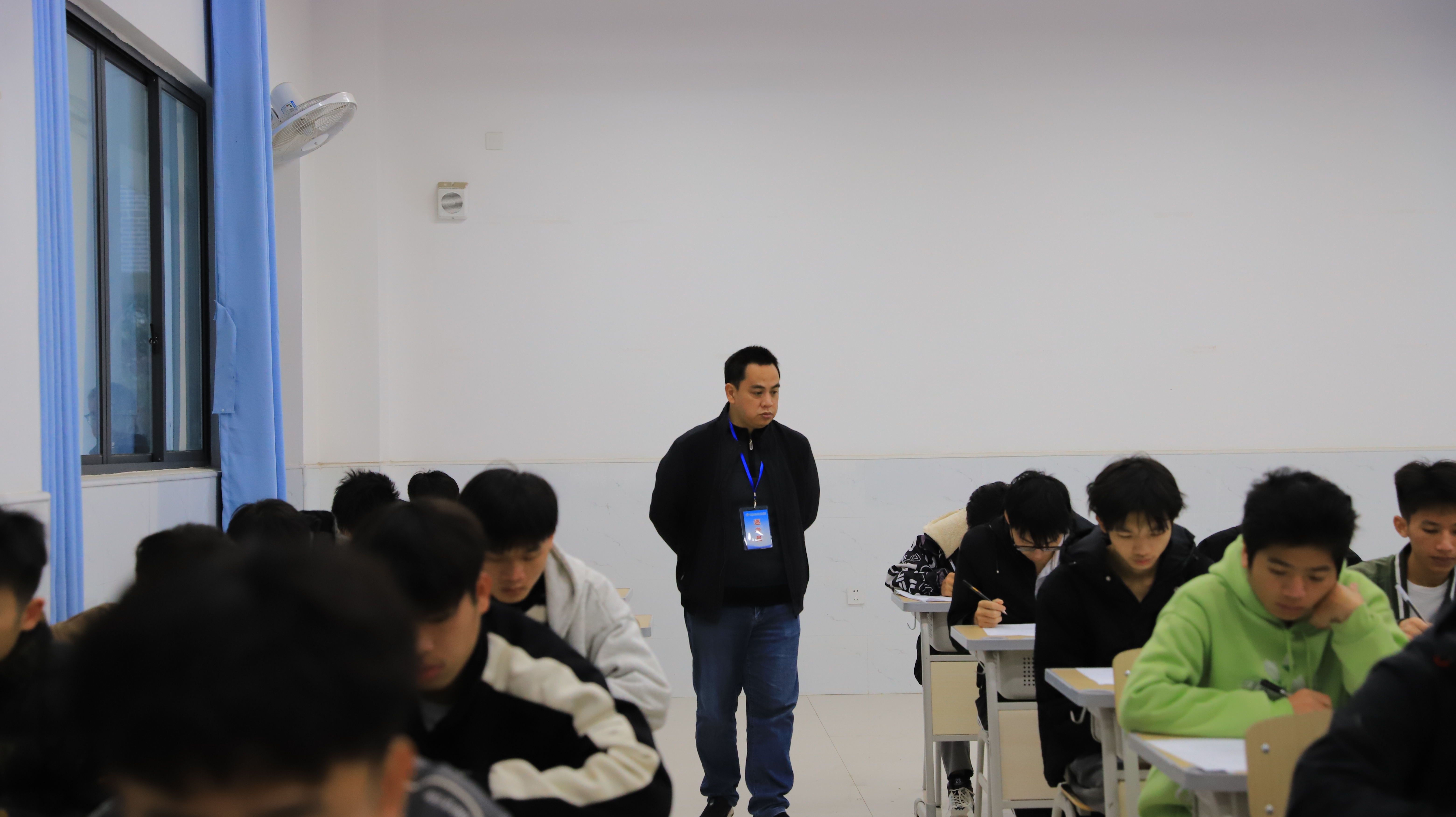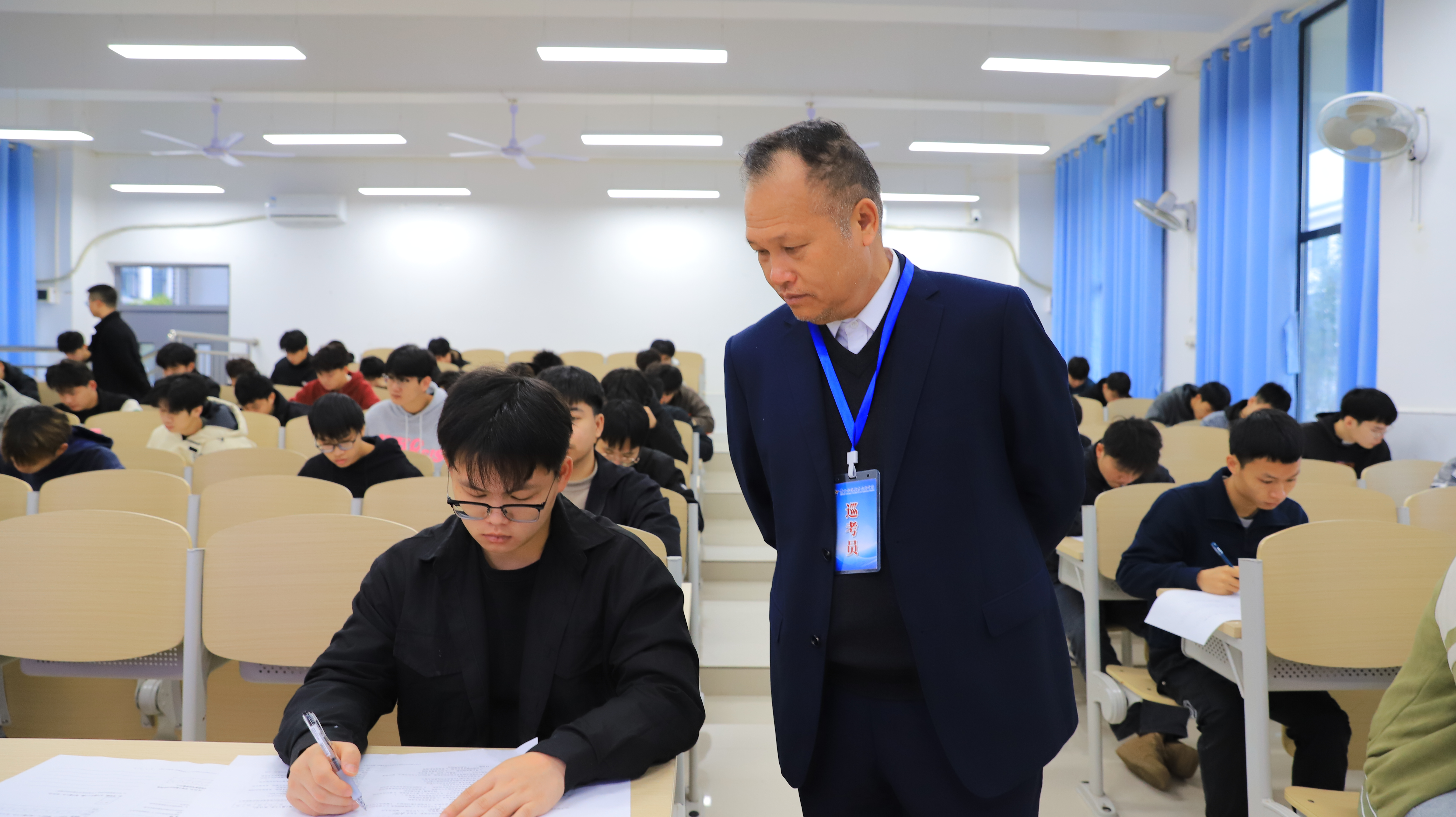 为确保期末考试顺利进行,切实加强考场管理,促进优良教风和学风建设, 2024年1月8日—1月10日,学院党委书记韦光茂,学院党委副书记、院长朱海强带领领导班子成员杨一笔、覃丽燕、陈继文、陈赋光、梁杰深入考场对期末考试组织情况进行了全面、细致的检查和指导。