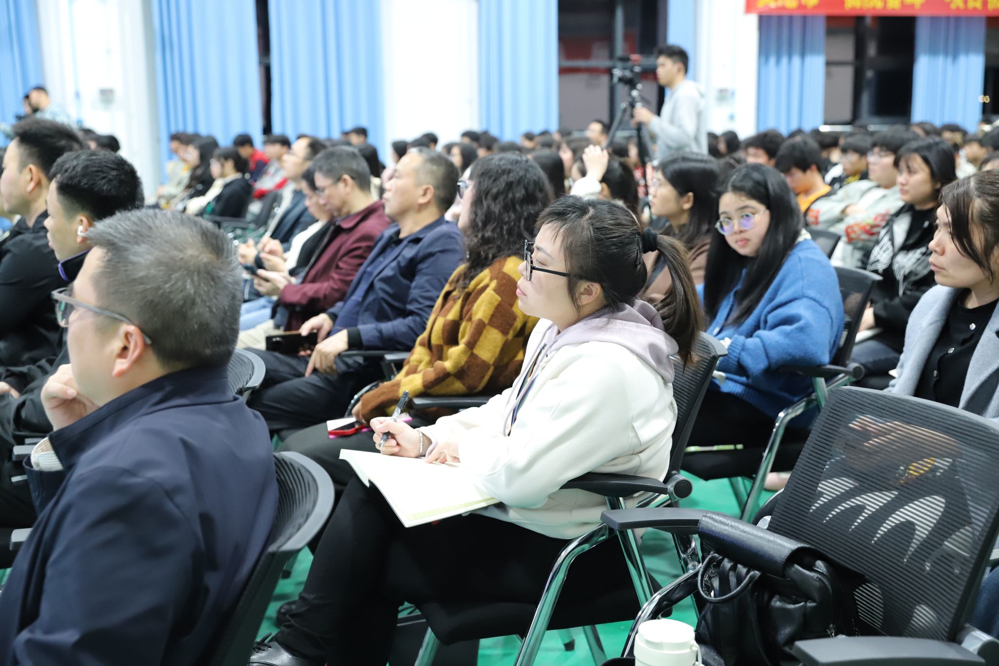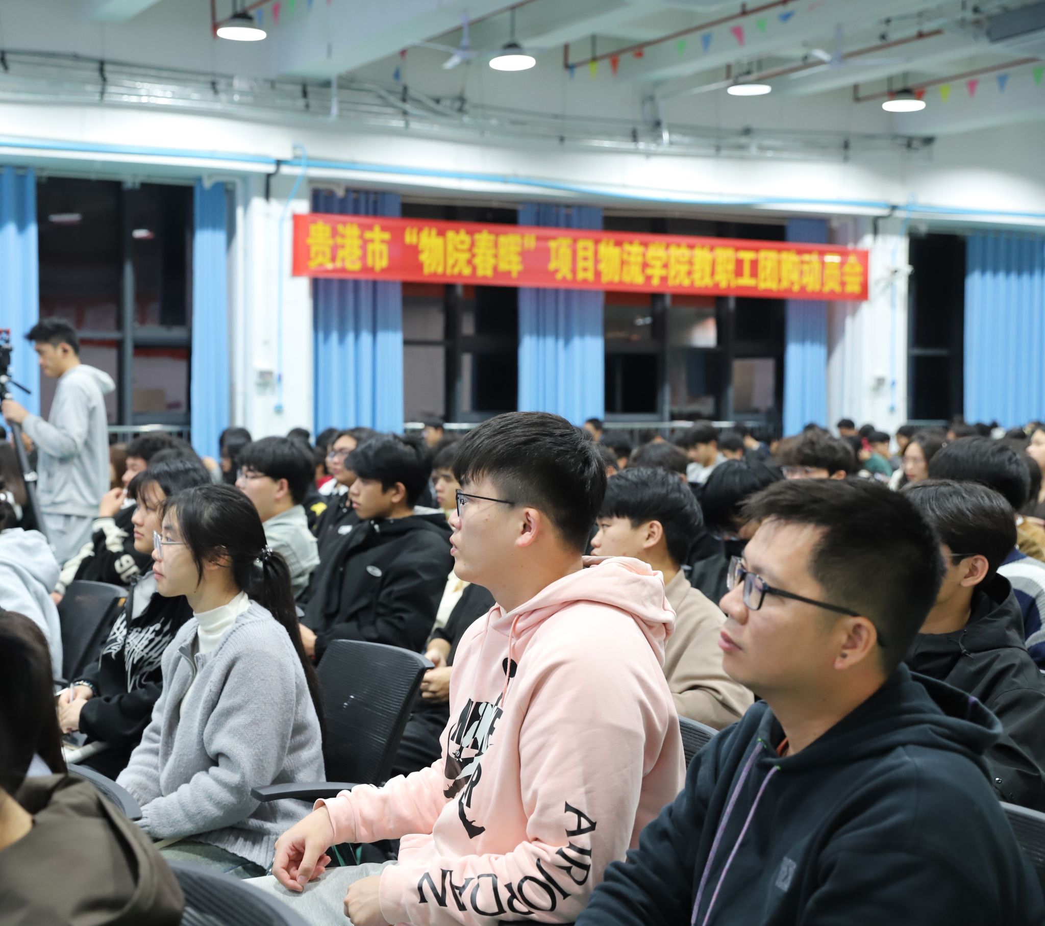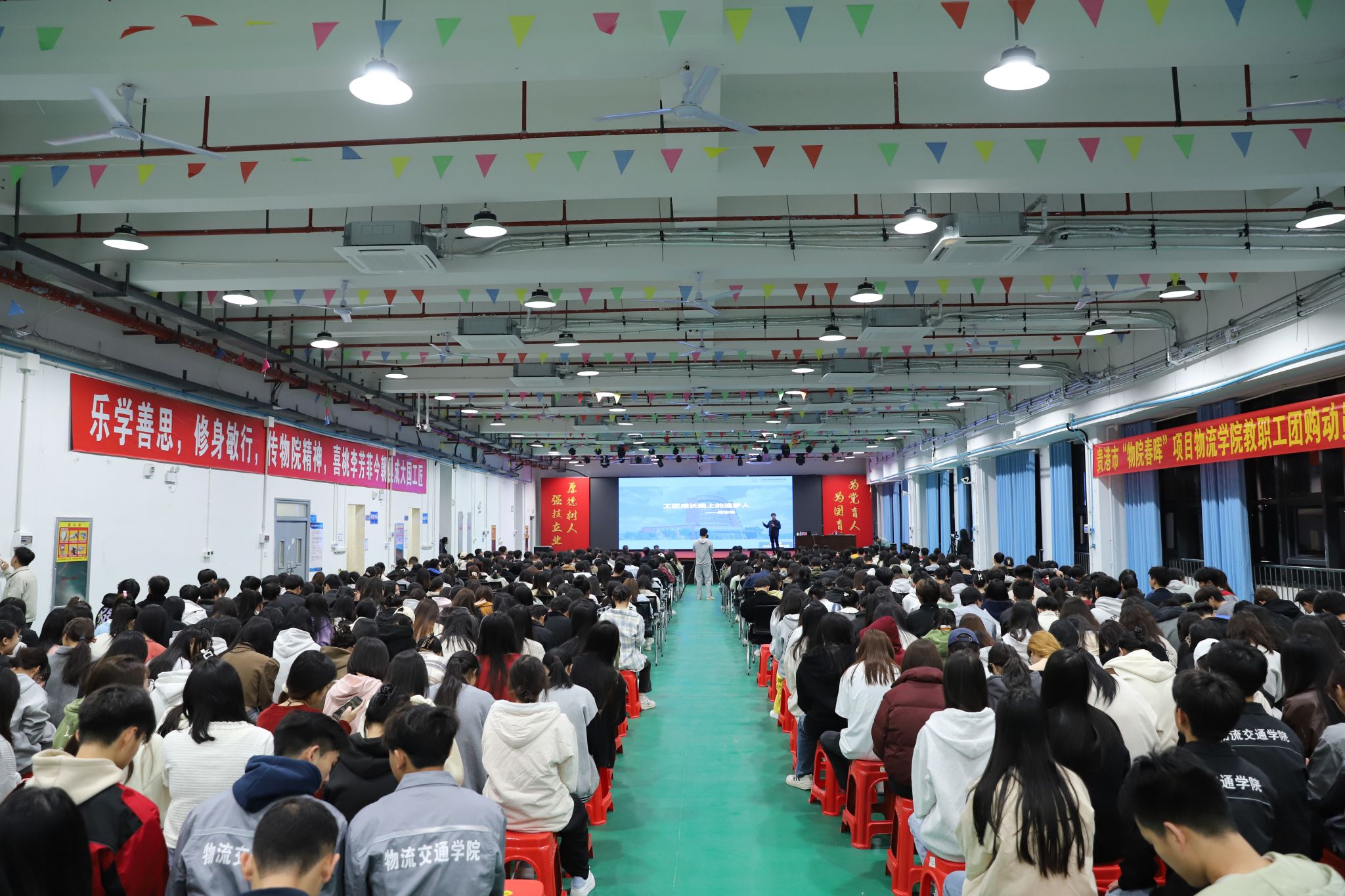 广西物产投资发展集团有限公司相关负责人,beat365官网各党支部书记,各部门、二级学院负责人,学生代表500余人现场聆听授课。