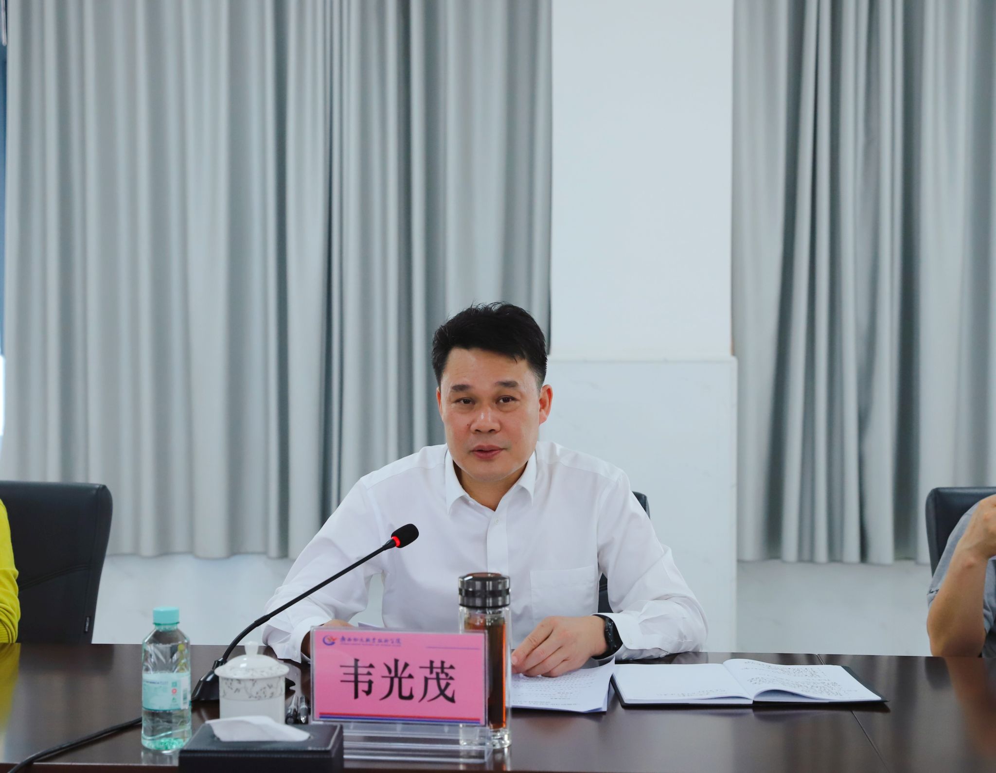 2024年3月27日,学院召开“争做担当作为好员工 争创干事创业好团队”活动动员大会,号召广大教职工担当作为、团结协作、创先争优、建立新功,形成你追我赶、竞相发展的良好局面。学院党委书记韦光茂出席会议并讲话。在家领导班子成员杨一笔、覃丽燕、梁杰参加会议。