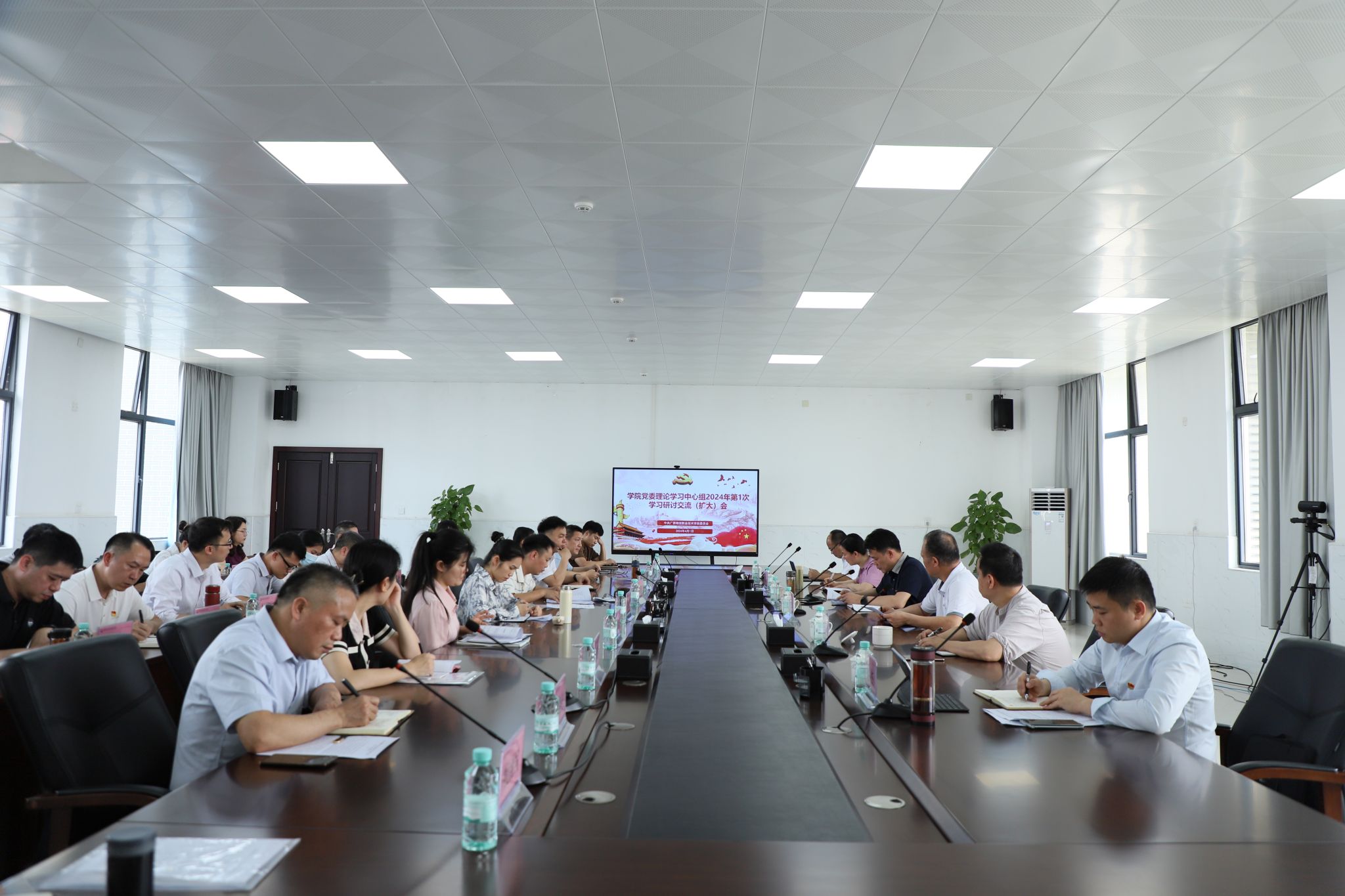 2024年4月1日,学院党委书记韦光茂主持召开党委理论学习中心组2024年第1次学习研讨交流(扩大)会,以“学方略、谋创新、抓落实,稳步推动学院高质量发展”为主题,进一步做到学思践悟,将学习成果转化为推动学院高质量发展的实际成效,为奋力谱写新时代壮美广西建设新局面贡献物院力量。在家中心组成员杨一笔、覃丽燕、陈继文、陈赋光、梁杰参加学习。