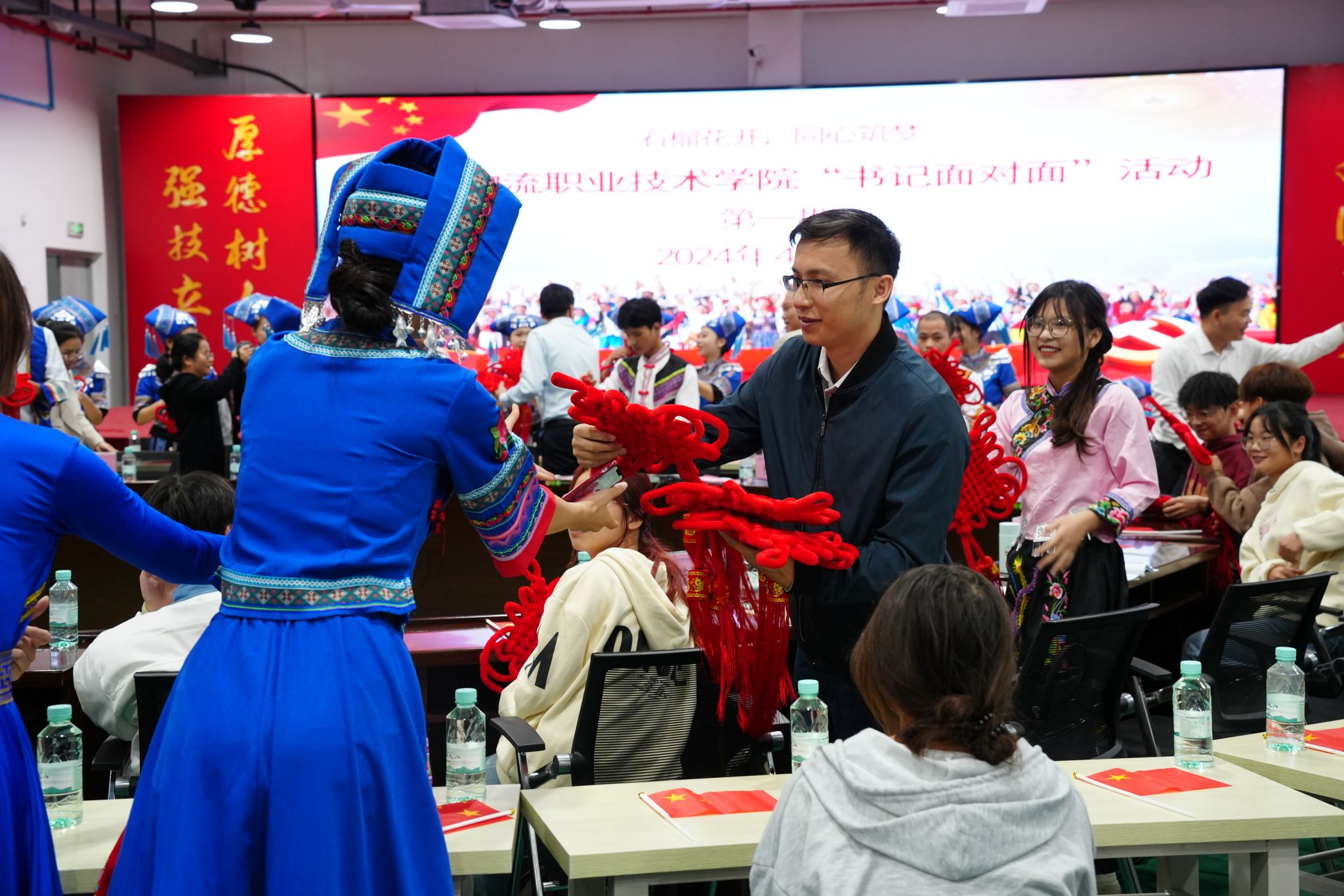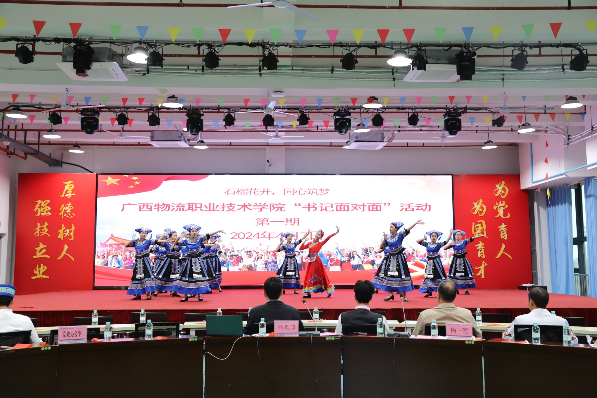 2024年4月7日上午,beat365官网在二号实训楼2楼召开“石榴花开,同心筑梦”第一期“书记面对面”主题圆桌座谈会,学院党委书记韦光茂与各民族学生代表齐聚一堂,面对面开展交流并为学生讲授专题思政课。学院党委副书记、工会主席杨一笔主持座谈会。