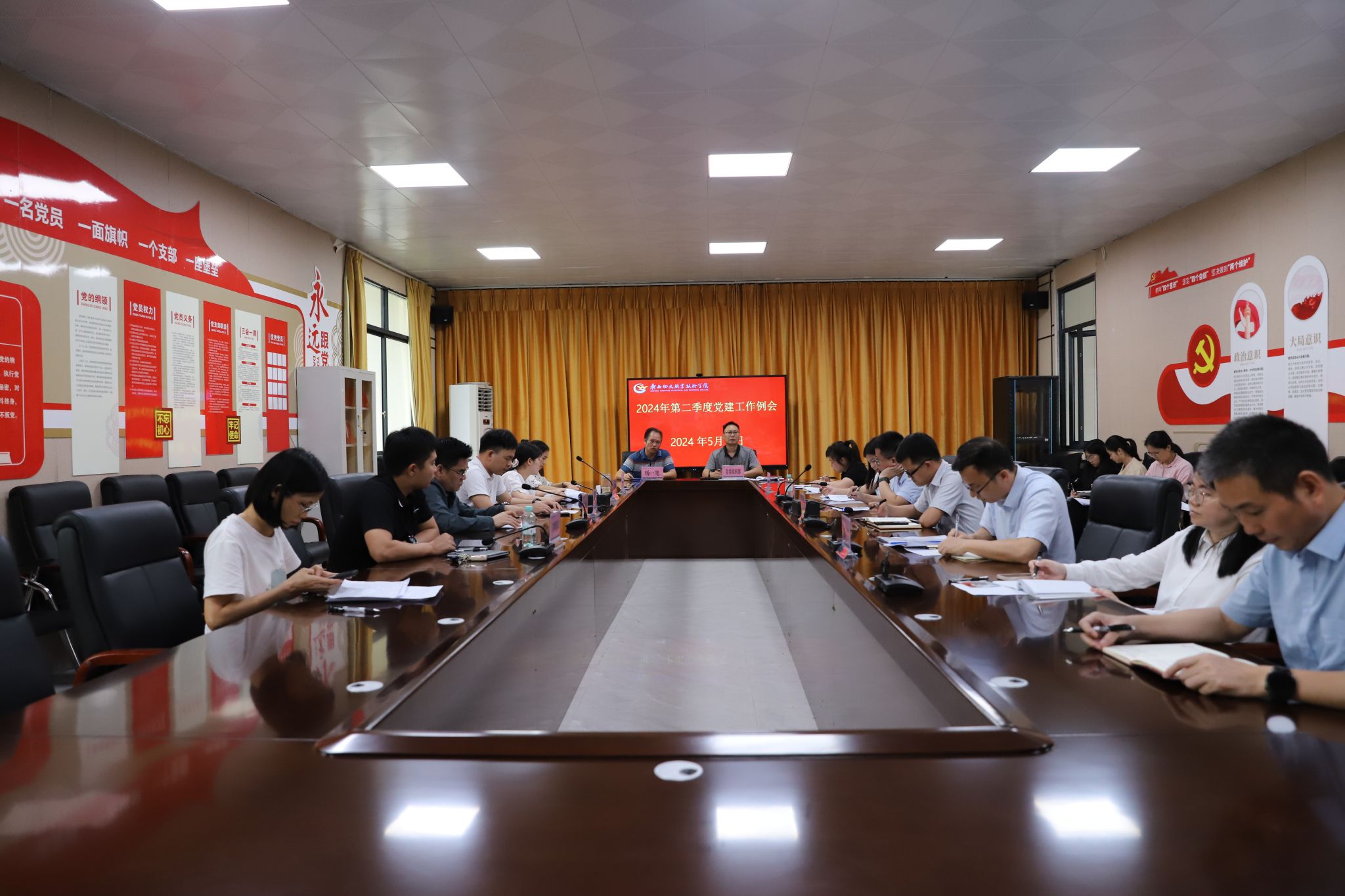 一本党建制度汇编,一本《广西发展党员手册》,一本党支部工作台账、一本“三会一课”记录本、一个优盘,这是5月10日学院党委在2024年第二季度党建工作例会上为各党支部书记发放的“党支部书记工作箱”,助推基层党组织建设全面进步、全面过硬。学院党委副书记、工会主席杨一笔出席会议。