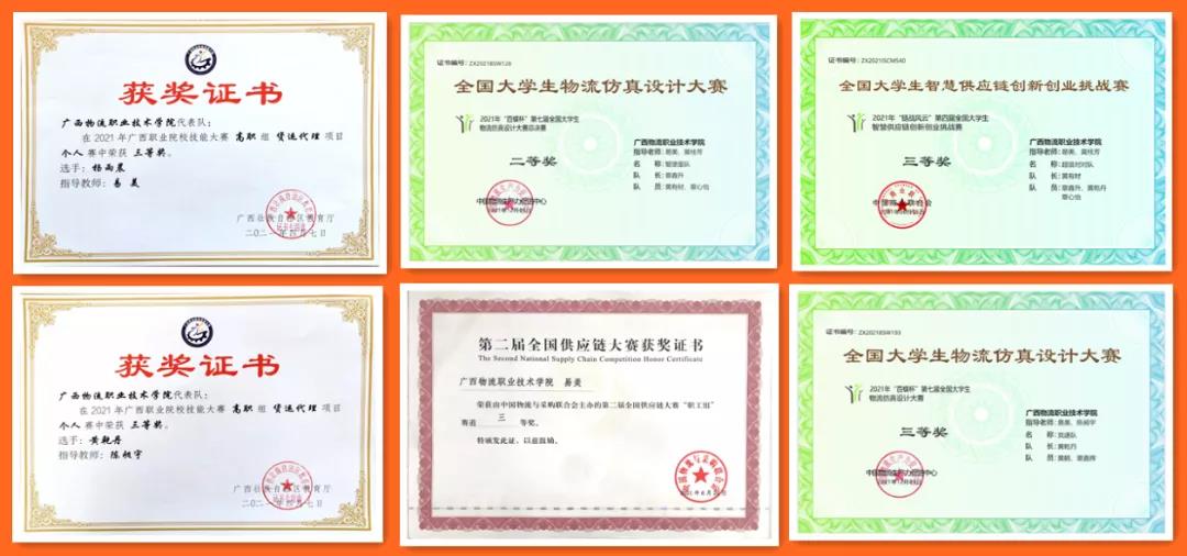 此外,还荣获货运代理广西区赛三等奖2项、全国大学生比赛二等奖1项、三等奖2项、全国供应链大赛教师赛三等奖1项。