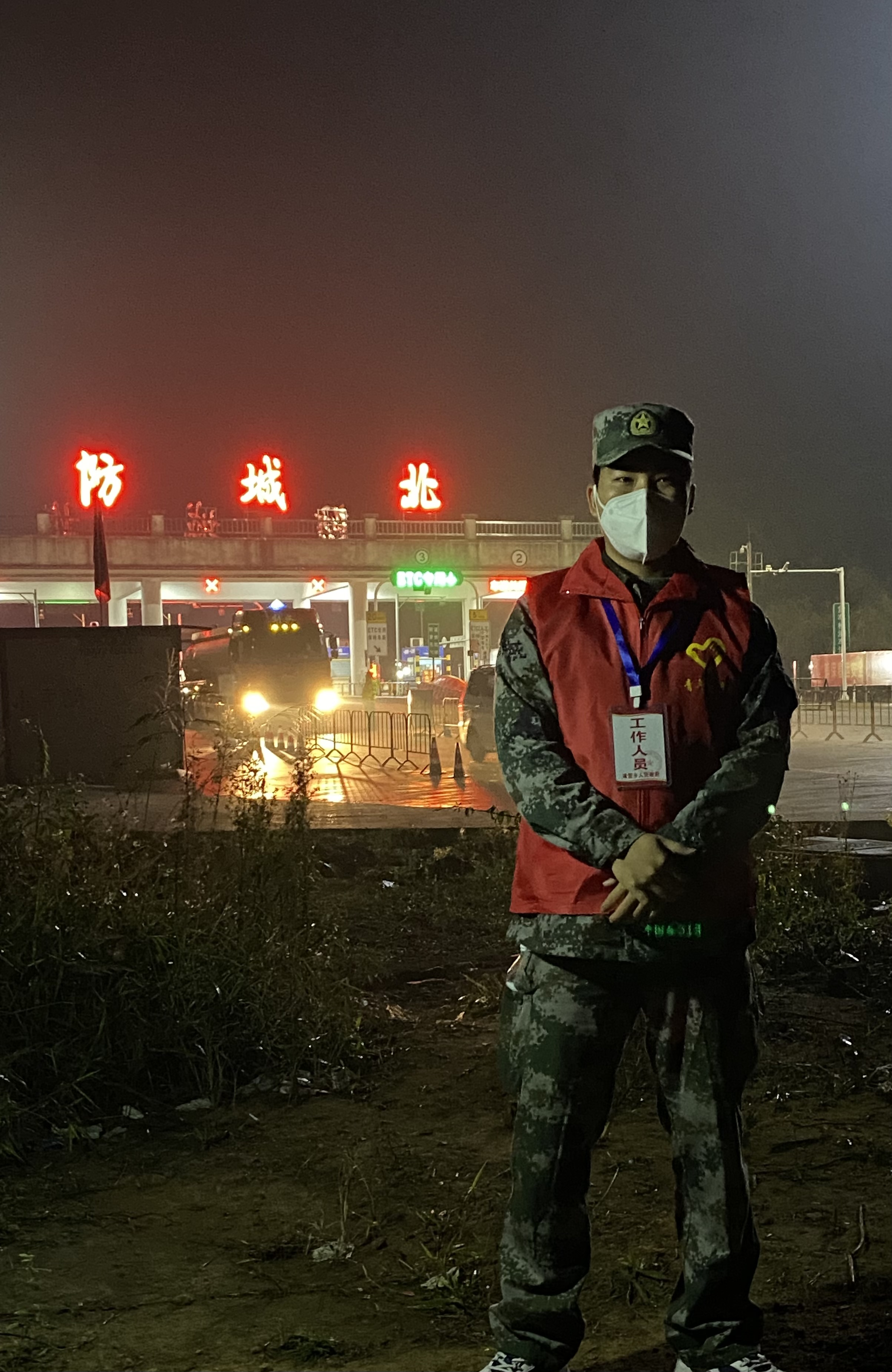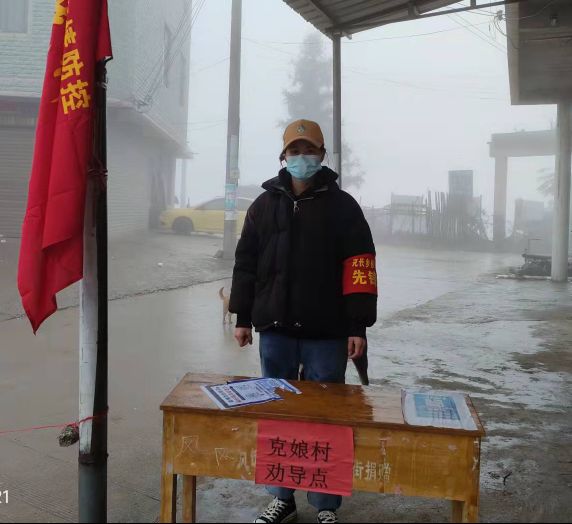家乡爆发疫情之后,黎承帅毫不犹豫联系当地村委报名,成为了一名光荣的战“疫”志愿者。在寒冷的天气里忙上忙下,测体温、搬运货物、宣传防疫知识......