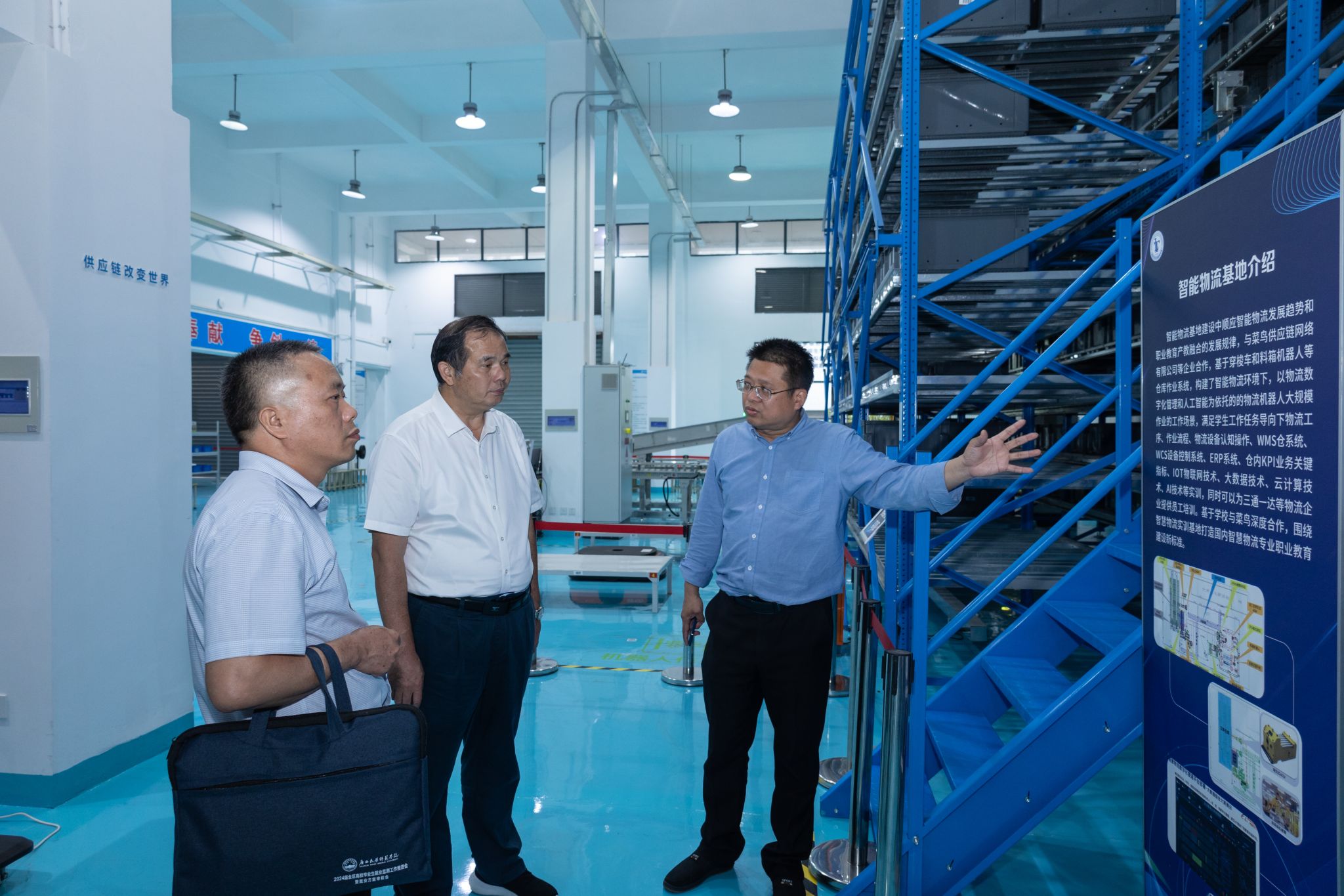 会后,朱海强一行参观了梦想创业学院、物流与供应链管理学院实训中心、智慧物流与供应链实训基地以及财会金融学院实训基地。