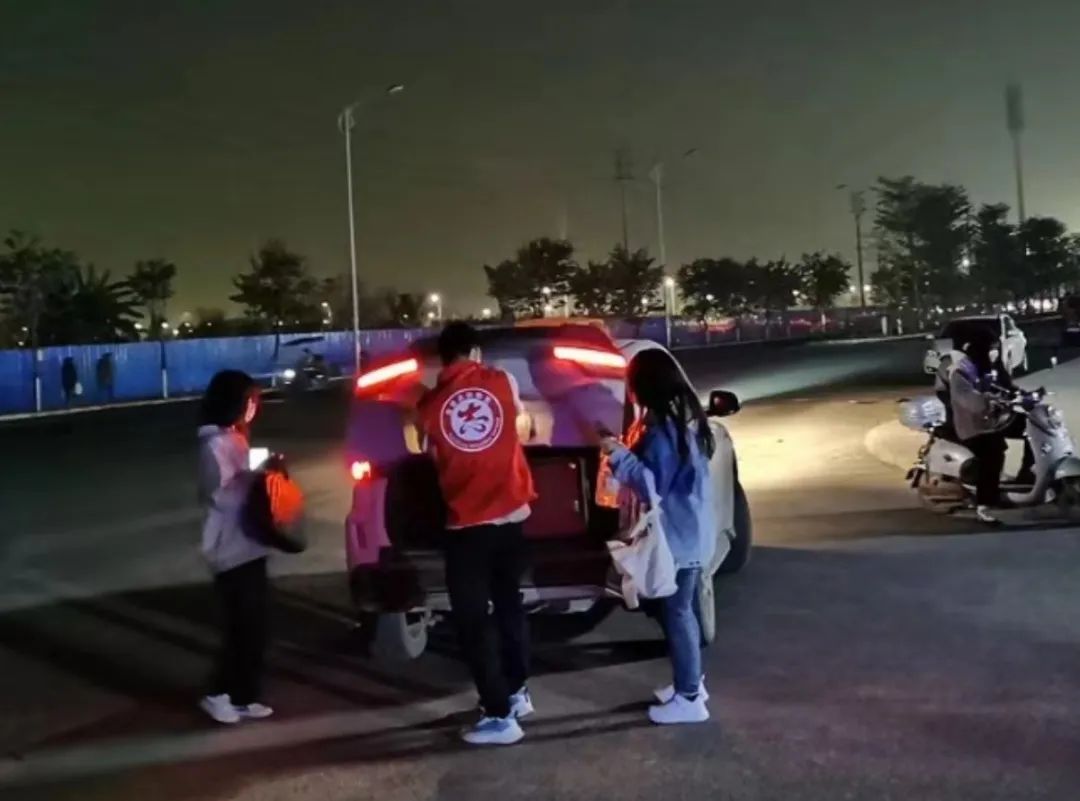 同学们都拎着大包小包的行李,志愿者伸出援手,帮助他们减轻负担。虽然不少同学在寒冷的夜里返校,但入校口志愿者与安保人员的坚守,像是一盏明灯,驱散了黑夜,带来了温暖。