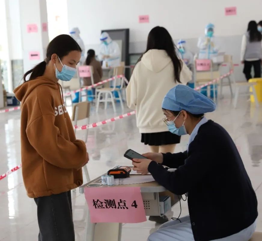 入校后,师生有序来到核酸采样现场,积极配合医务人员完成核酸检测工作,各项工作进展顺利、秩序井然。