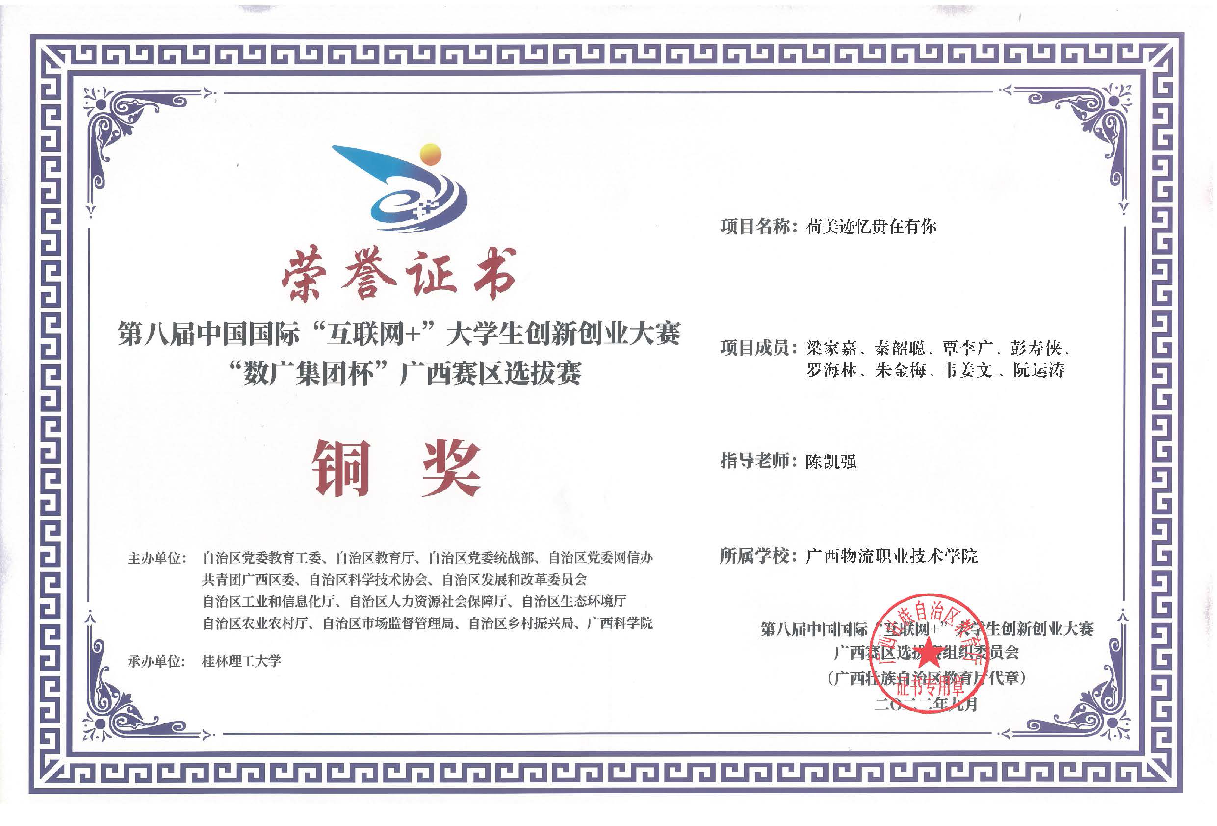 ▲首次参加第八届中国国际“互联网+”大学生创新创业大赛“数广集团杯”广西赛区选拔赛获得铜奖