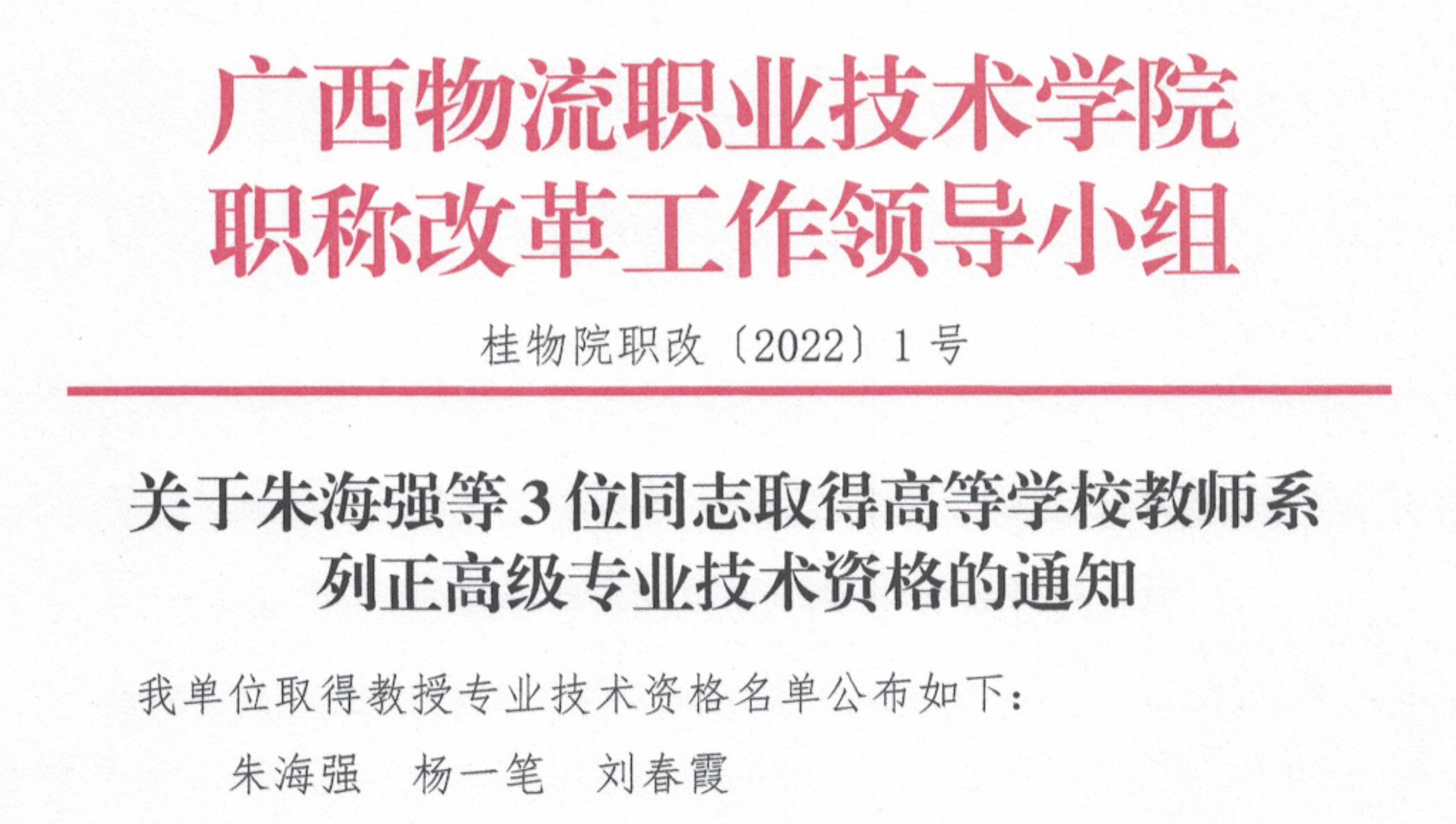 ▲2022年12月,beat365官网朱海强、杨一笔、刘春霞取得教授资格