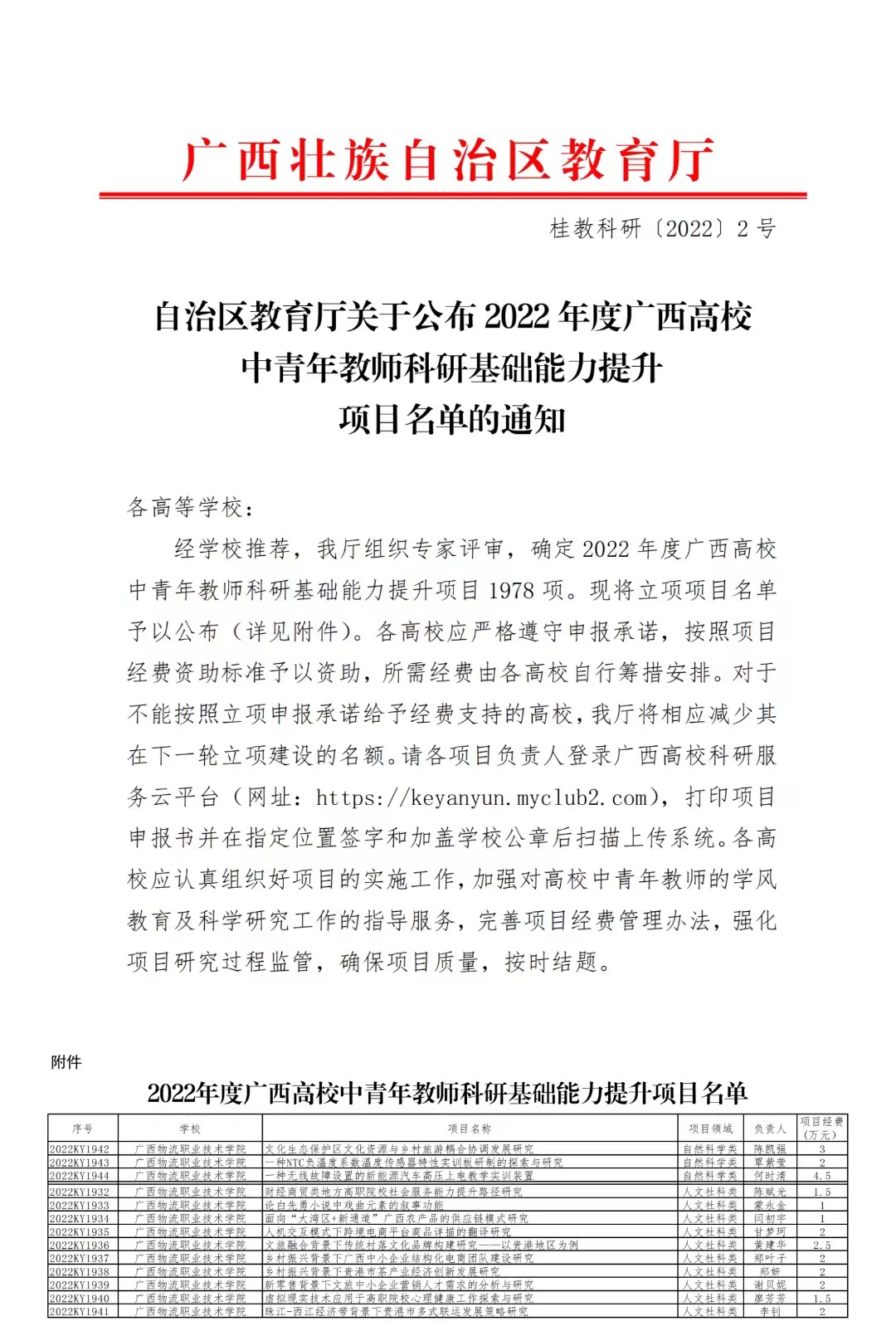 ▲beat365官网申报的2022年度广西高校中青年教师科研基础能力提升项目课题喜获13项立项