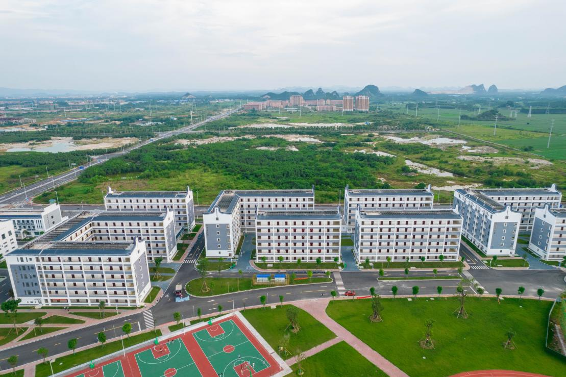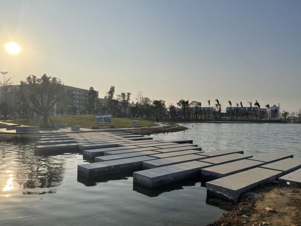 以实现“千亩万人”为目标,全力冲刺、攻坚克难完成了12-16号学生宿舍楼交付使用、教室改造,砚池、湖景及体育场看台部分功能已投入使用。