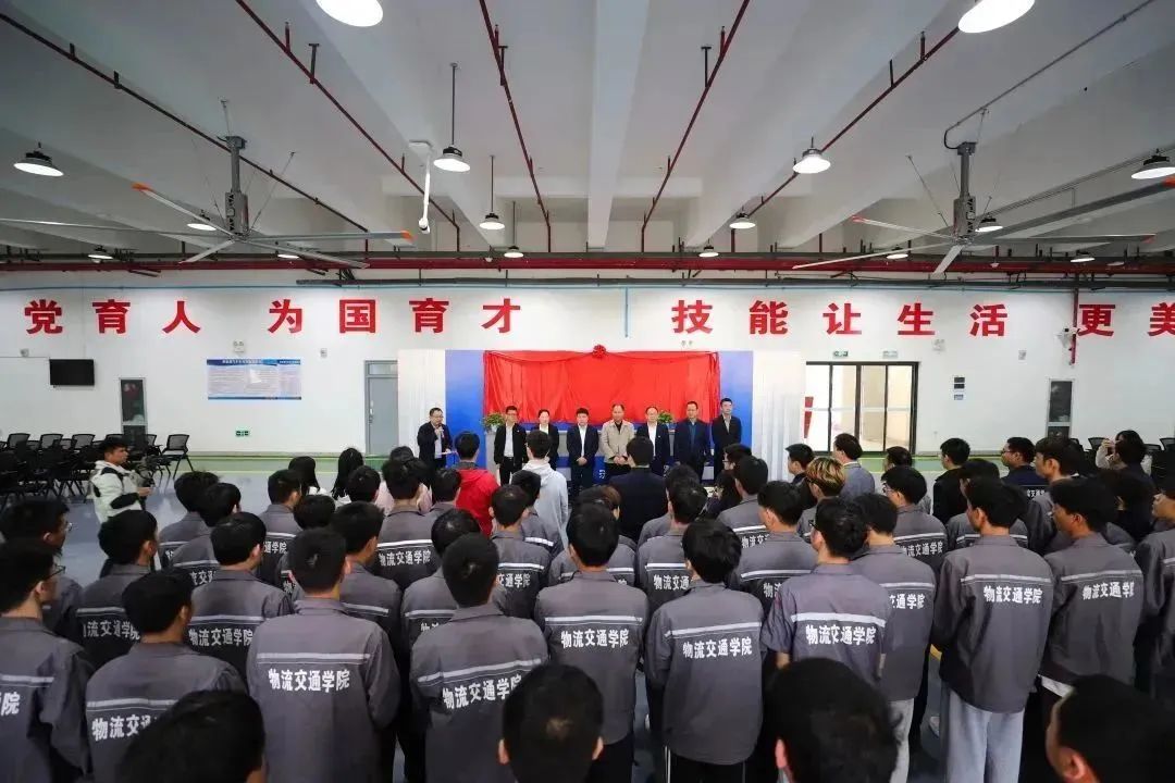 广西桂物机电集团有限公司、广西一驰教育科技有限公司、beat365在线唯一官网党政办公室等相关人员,物流交通学院党支部书记、师生代表参加揭牌仪式。
