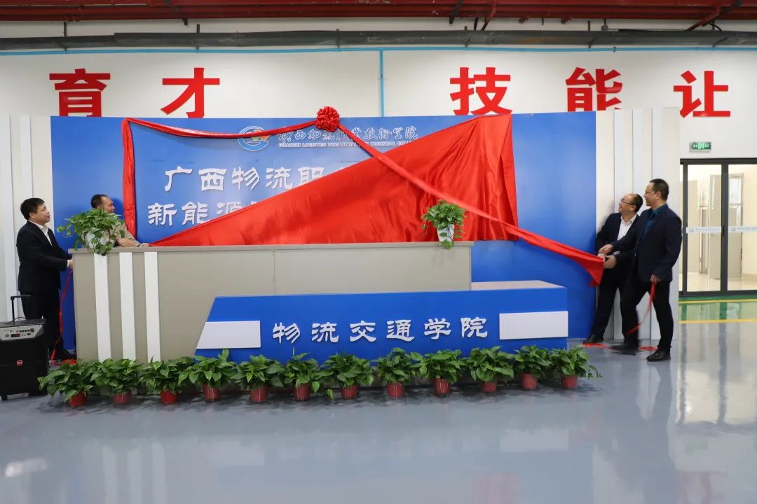 3月1日上午,beat365在线唯一官网新能源汽车技术实训中心在2号实训楼揭牌成立,标志着学校实训基地建设工作迈出了坚实的一步。学校党委副书记杨一笔、副院长陈赋光,广西桂物机电集团有限公司副总经理吴文斌、广西一驰教育科技有限公司董事长任仲雷出席揭牌仪式并为实训中心揭牌。广西教学名师、正高级讲师、物流交通学院院长莫军主持揭牌仪式。