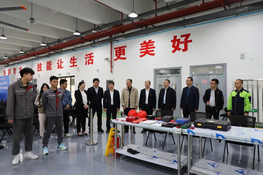 揭牌仪式后,参加人员实地参观了新能源汽车技术实训中心。