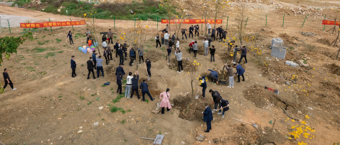 种希望,不负春光。这次植树活动,共栽种香樟树1棵,黄花风铃143株,石榴200株,植紫花芦莉4000株。