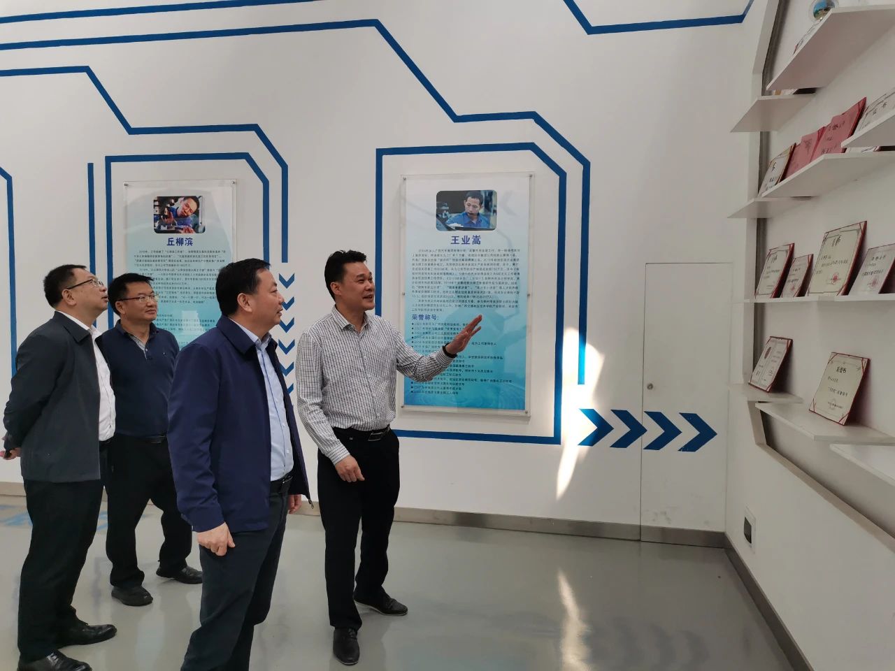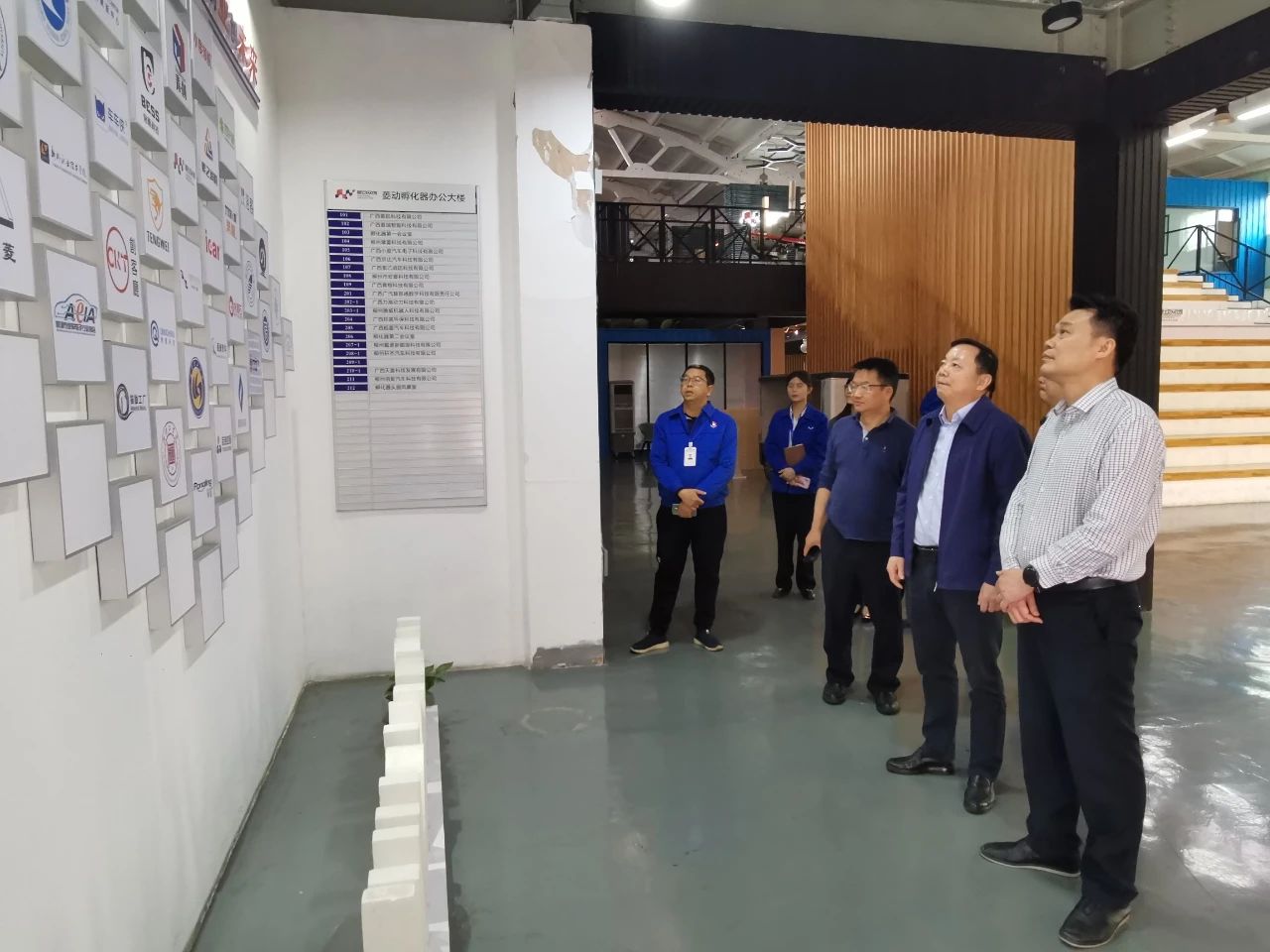 座谈会前,韦光茂一行参观了企业发展历史展厅、孵化基地、车间、食堂、实习宿舍等。
