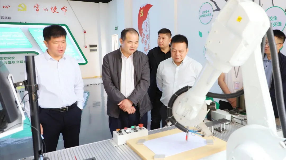 会前,朱海强一行参观了广西自然资源职业技术学院美的绿色智能制造产业学院、国家万众创业创新示范基地、世界技能大赛国家集训队集训点等实训室。