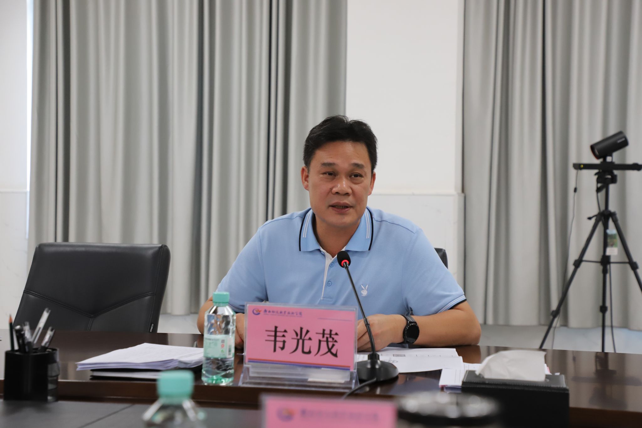 2024年10月18日上午,学院召开2025届毕业生就业工作动员部署会,学院党委书记韦光茂出席会议并讲话,党委副书记、院长朱海强总结学院2024届毕业生就业工作情况并部署2025届毕业生就业工作,领导班子成员杨一笔、覃丽燕、陈继文、陈赋光参加会议。学院党委委员、副院长、宣传部部长梁杰主持会议。